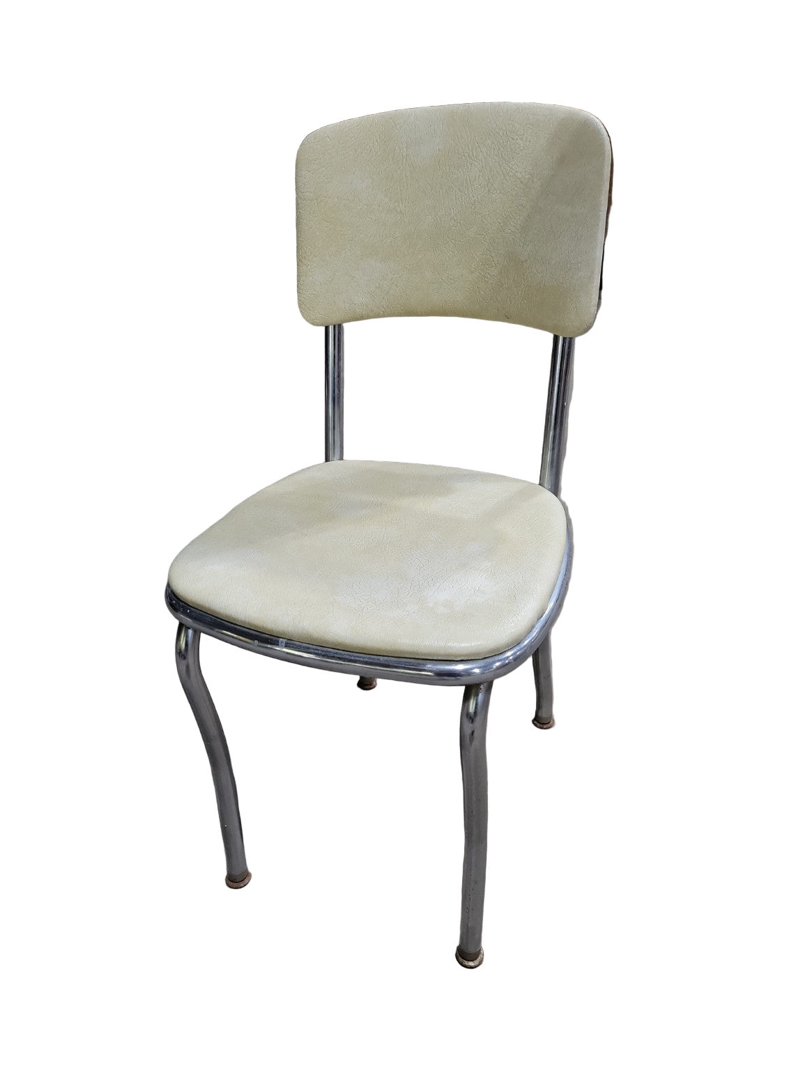 Mid-Century Chrome and Vinyl Kitchen Chair – Cream Upholstery