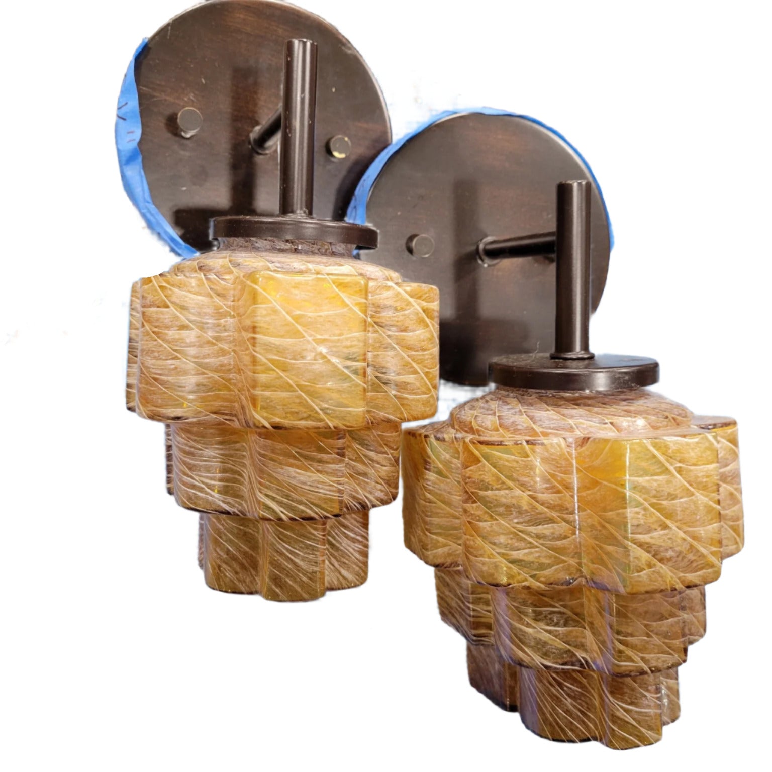 Mid-Century Modern Amber Swirl Glass Wall Sconces (Pair)