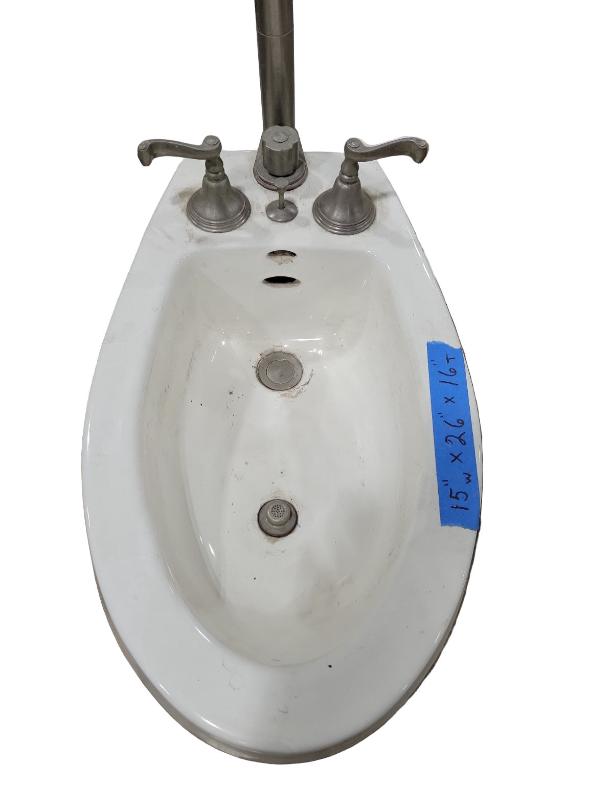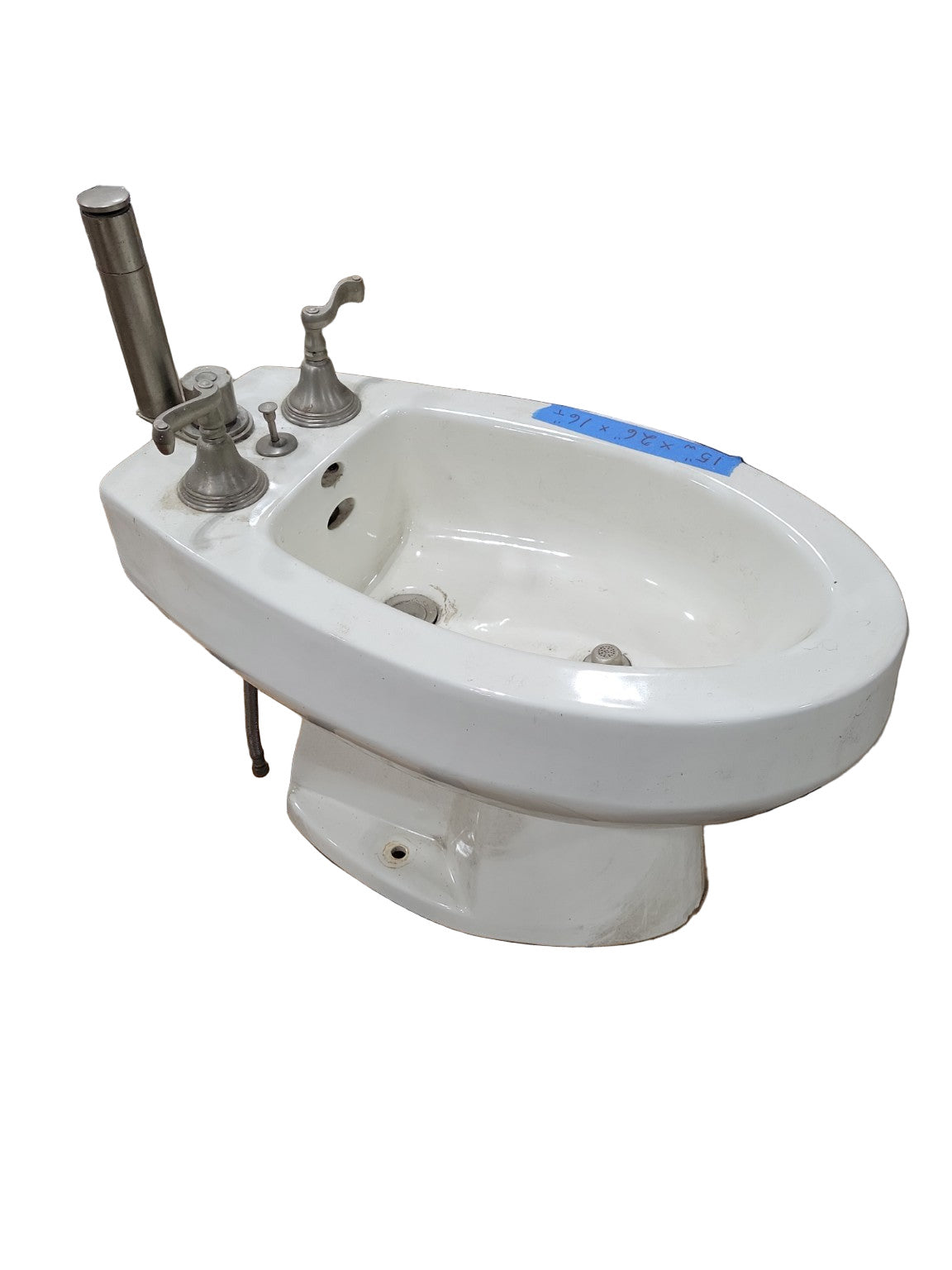 Mid-Century Vitreous China Bidet with Original Nickel Hardware – 15" W x 26" D x 16" T