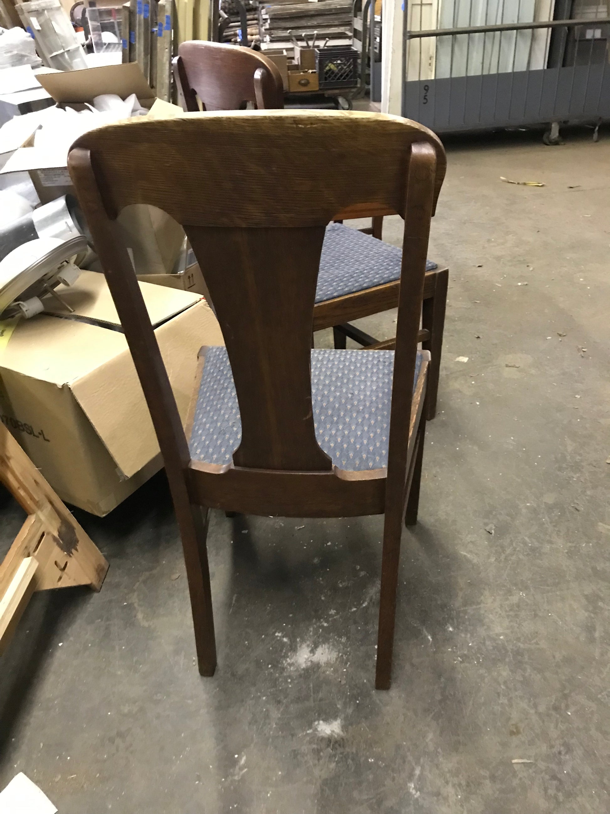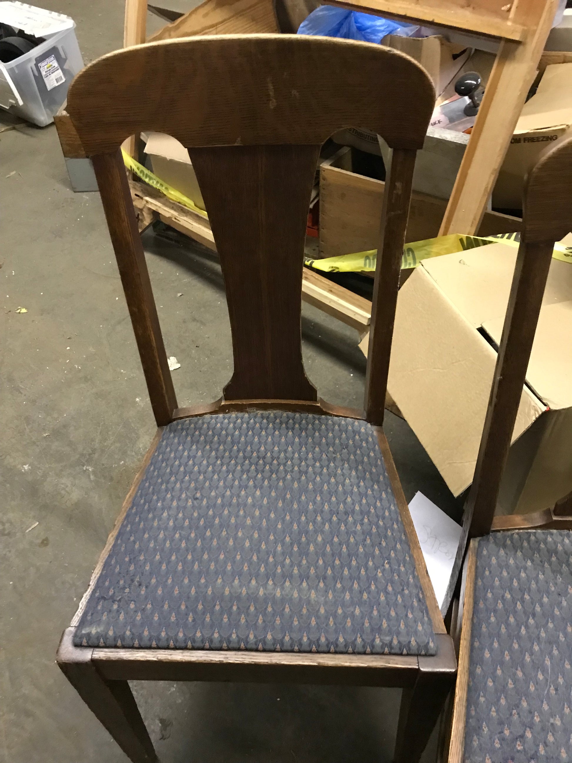 Mid Century Wood Dining Chair with Blue Upholstered Seat