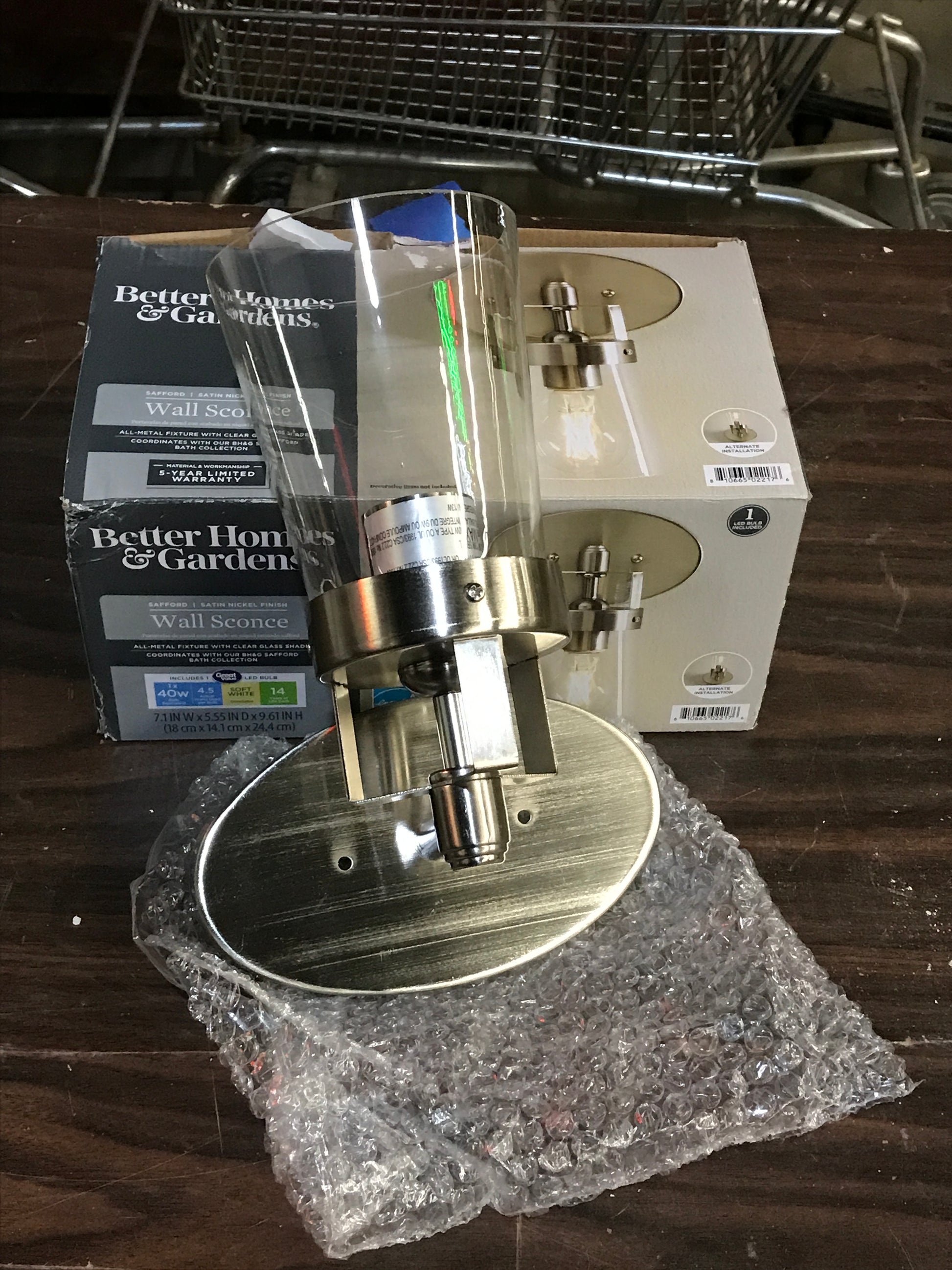 Description : 1light satin Nickel wall sconce, all metal fixture with clear glass shade.