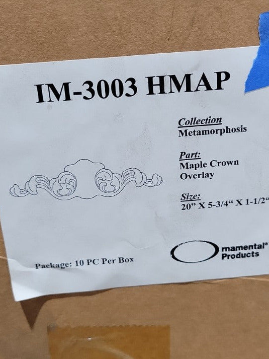 This single maple crown overlay from the Ornamental Products “Metamorphosis” collection features an elegant scroll and acanthus leaf motif, intricately carved into solid maple wood. Designed to be applied as a decorative accent above cabinetry, doorways, or mantels, the overlay offers a refined architectural detail with smooth unfinished wood, ready for staining or painting to match your interior design. Its classic design makes it ideal for restoration projects or new builds aiming to add timeless charm.