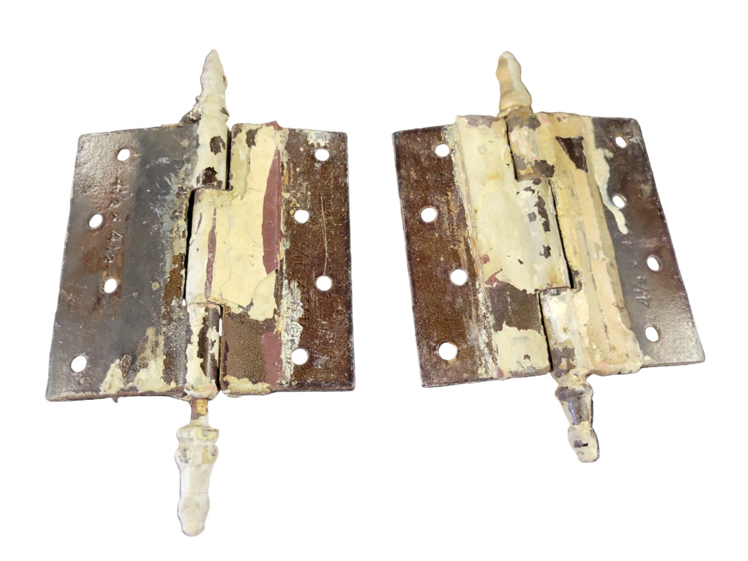 Steeple-tip hinges were widely popular in the late 1800s for homes, churches, and civic buildings, blending function with ornamental hardware detail. These examples, with their tall finials and size stampings, are typical of quality hardware made by regional foundries or large-scale manufacturers.
