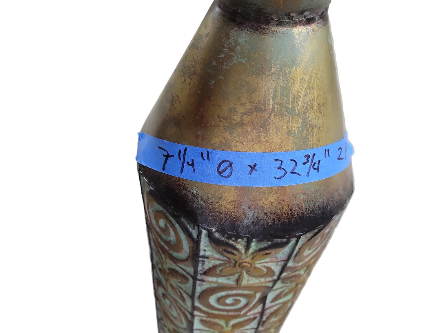 Pair of Tall Embossed Metal Floor Vases – Patina Finish