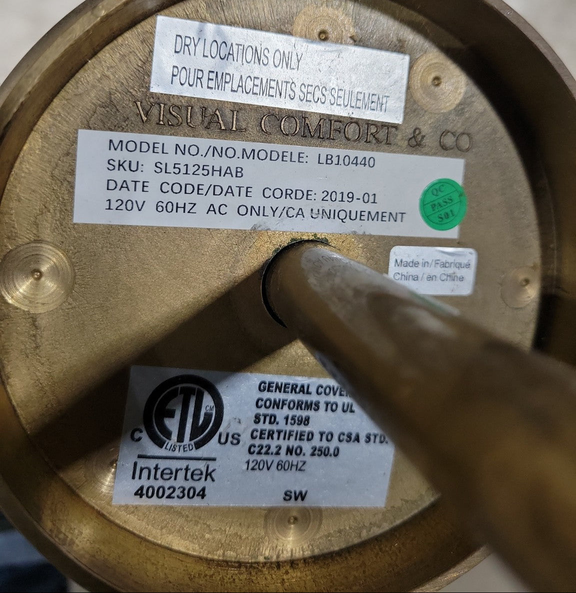 Maker: Visual Comfort & Co., Model LB10440 / SKU SL5125HAB
