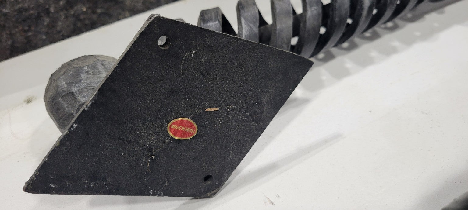 Wrought iron handles of this style have been used for centuries, commonly seen in Spanish, Mediterranean, and rustic farmhouse designs. The "Made in Spain" marking suggests they are high-quality imports crafted using traditional blacksmithing methods.