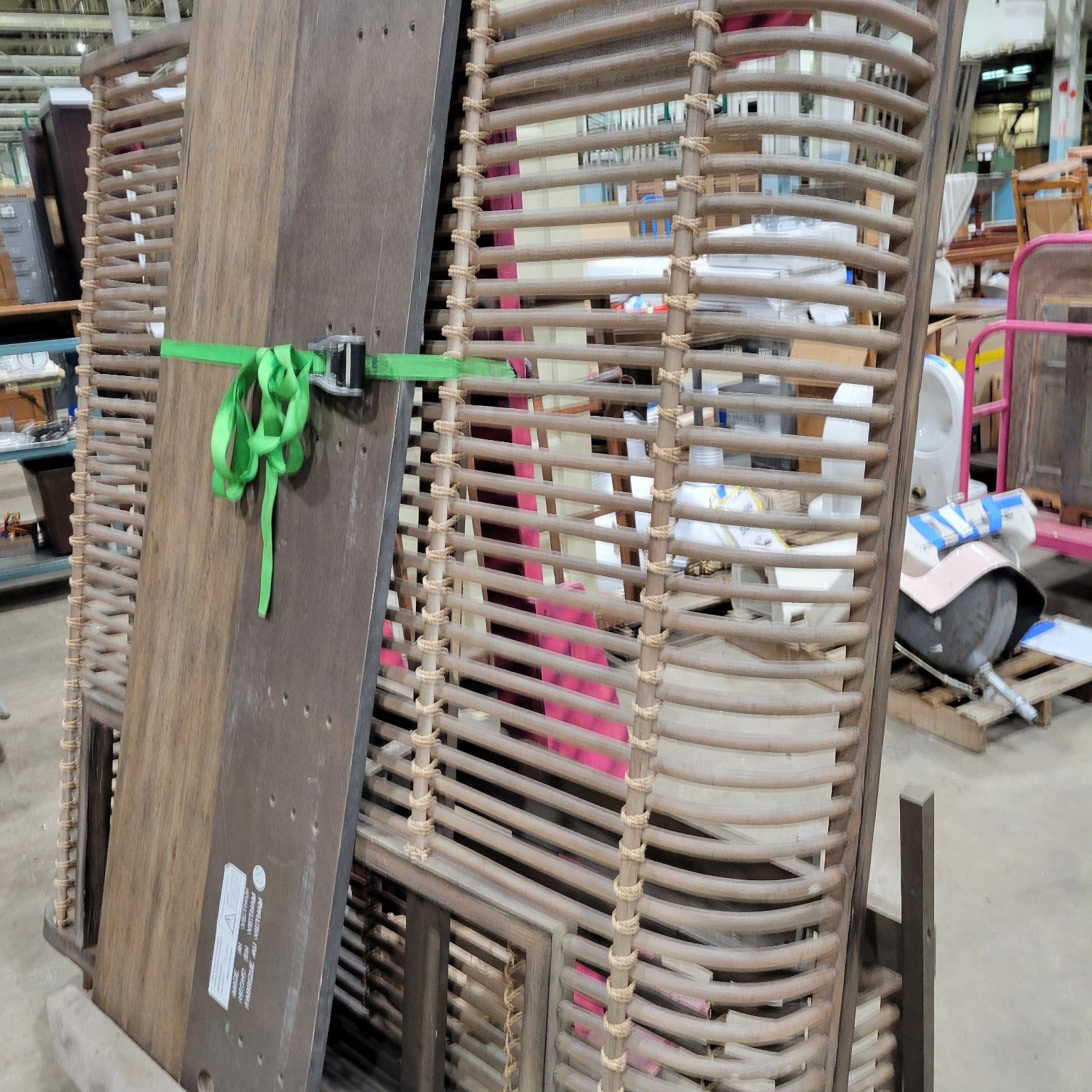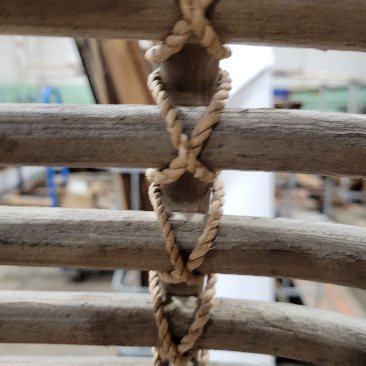This Queen Natural Taren Woven Bed features a beautifully crafted wooden frame with an intricate woven rattan design. The piece has a natural, earthy aesthetic, blending rustic and coastal influences. The gently curved headboard and footboard, secured with braided rope details, add a handcrafted touch. This bed frame provides sturdy support and is ideal for adding texture and warmth to any bedroom.