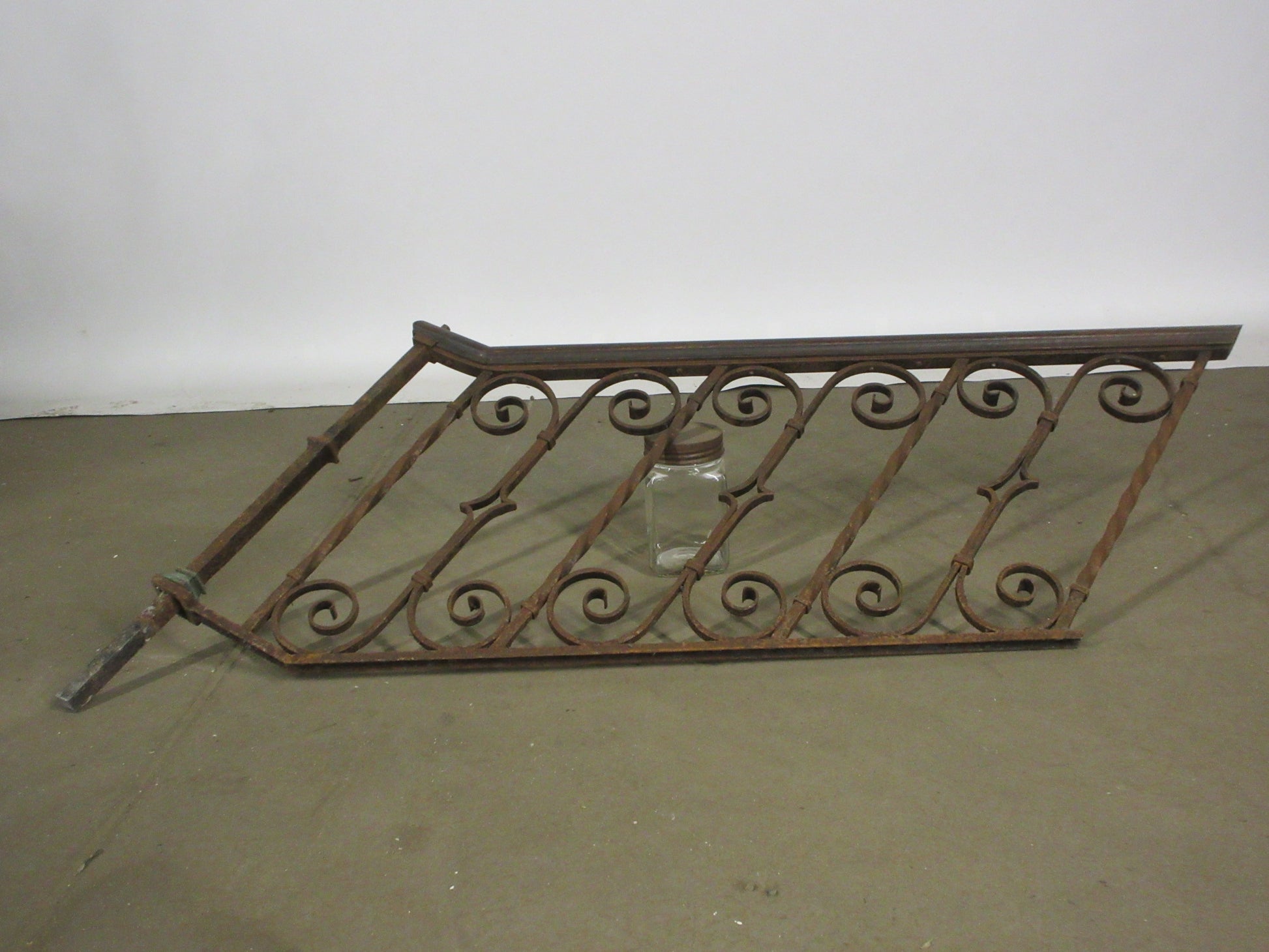 Description : Wrought iron railing with wood handrail.