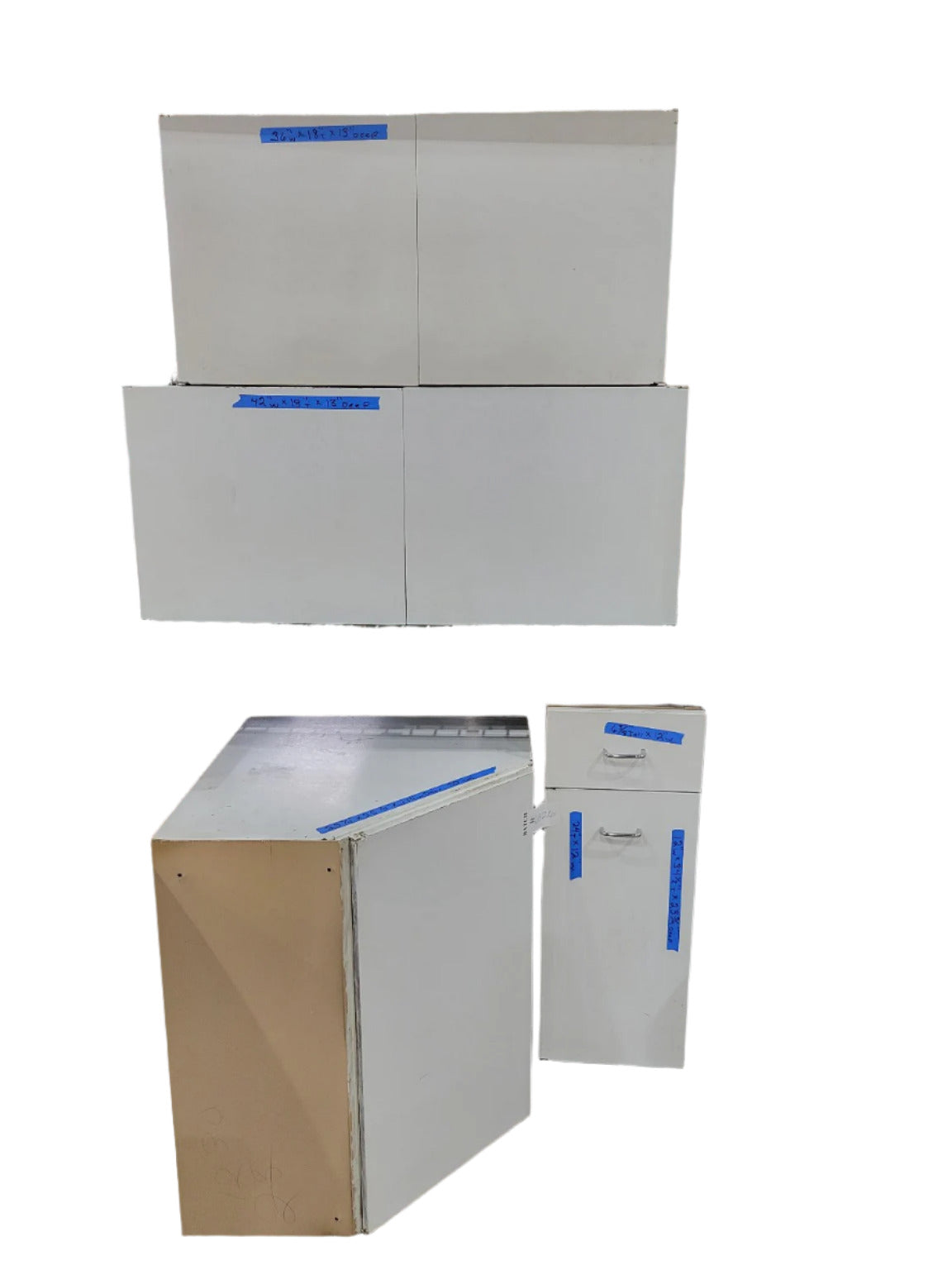 These cabinets likely came from a residential kitchen remodel. The sizing and design reflect mass-produced mid-grade cabinetry common in late 20th-century homes.