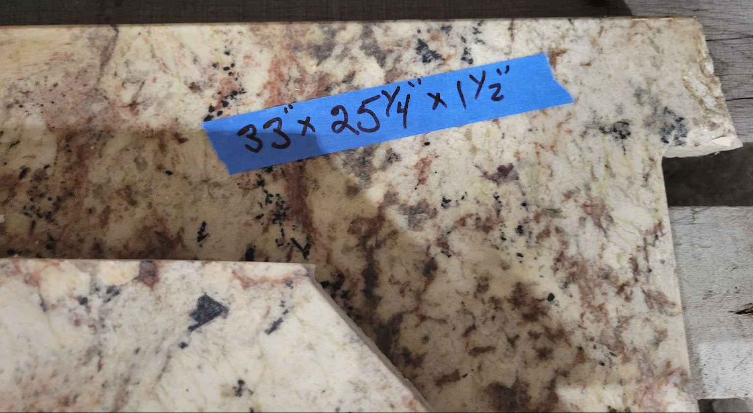 Sourced from a stone shop or deconstructed residential installation; likely surplus or offcut granite from vanity or kitchen fabrication.