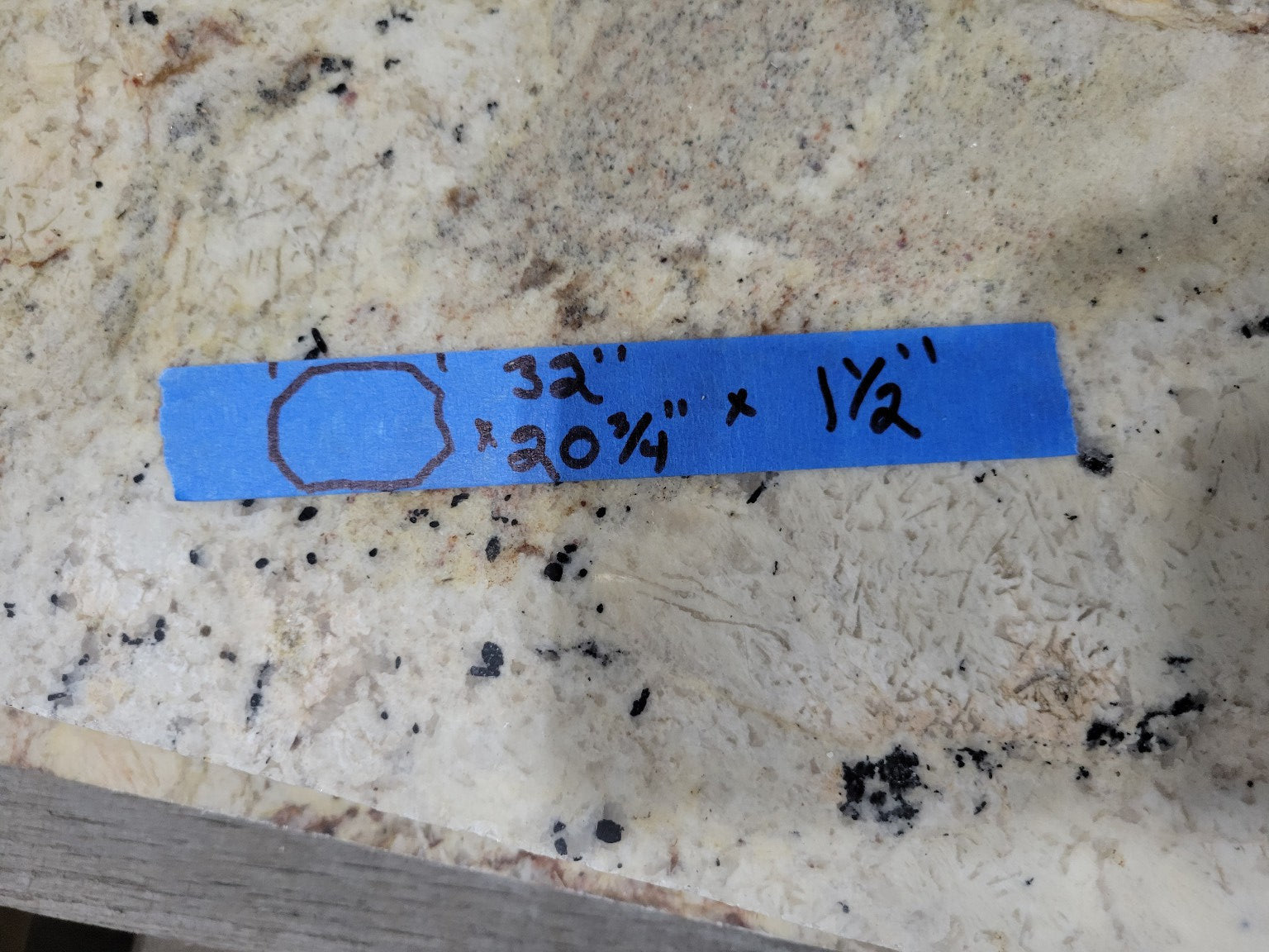 Rectangular remnant: 33" W x 25 ¼" D x 1 ½" T