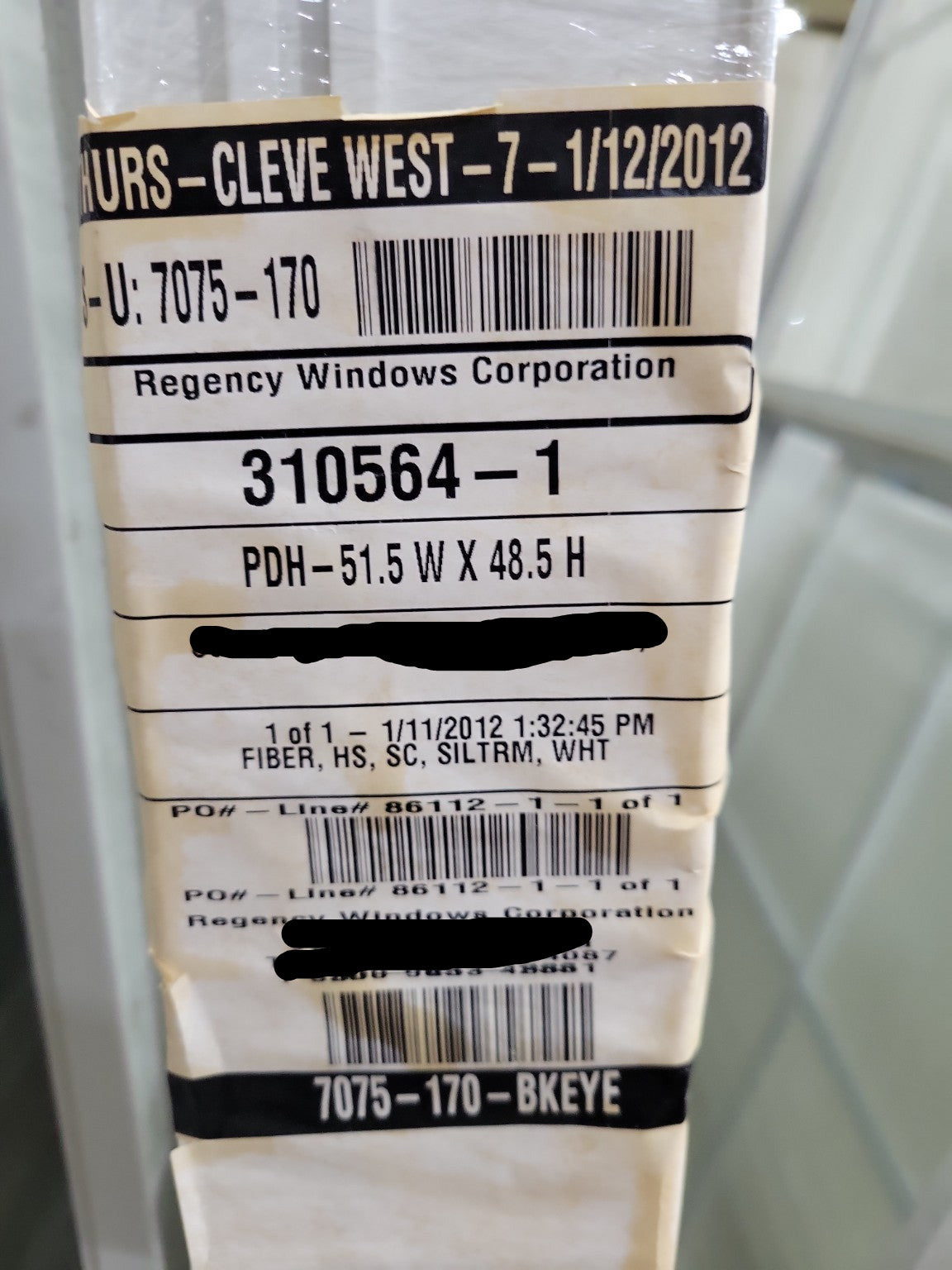 Regency Windows Corporation – Model PDH, Serial 310564-1