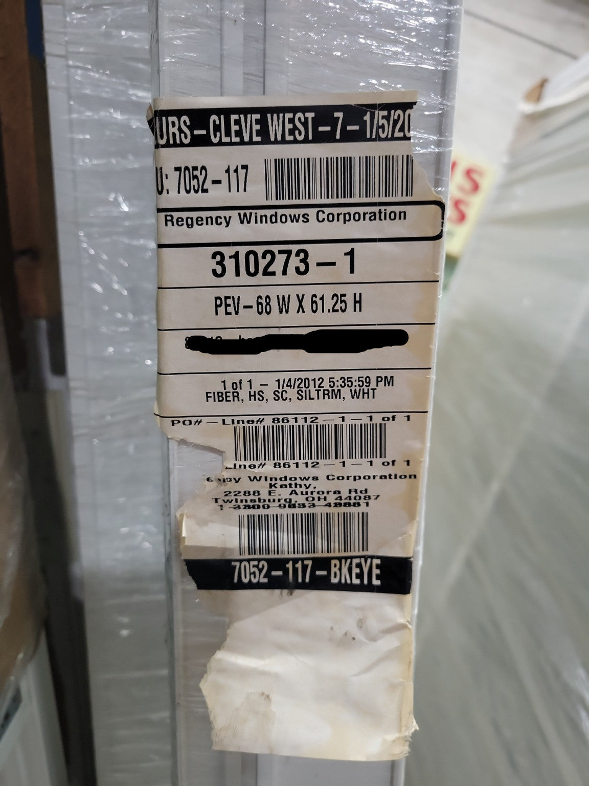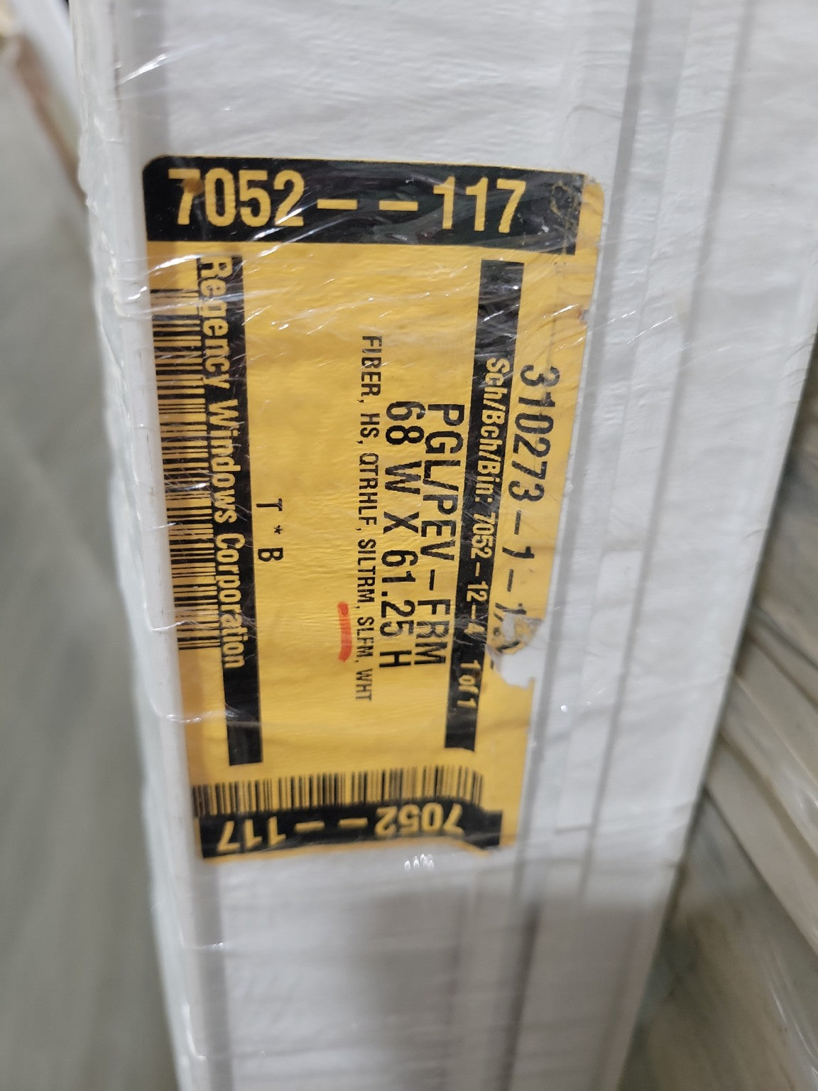 This Regency Windows Corporation picture window (Model PEV 310273-1) is a large, factory-sealed fixed unit designed for bright, open spaces. Measuring 86" W x 62" H x 3 1/4" D, it features a clean white vinyl frame with fusion-welded corners and double-pane insulated glass. The window’s sealed construction provides excellent thermal insulation and sound reduction, while the expansive glazing area maximizes natural light. Still in its original factory wrap with complete labeling, this window is in unused condition and well-suited for residential or light commercial installations requiring a durable, energy-efficient fixed view.