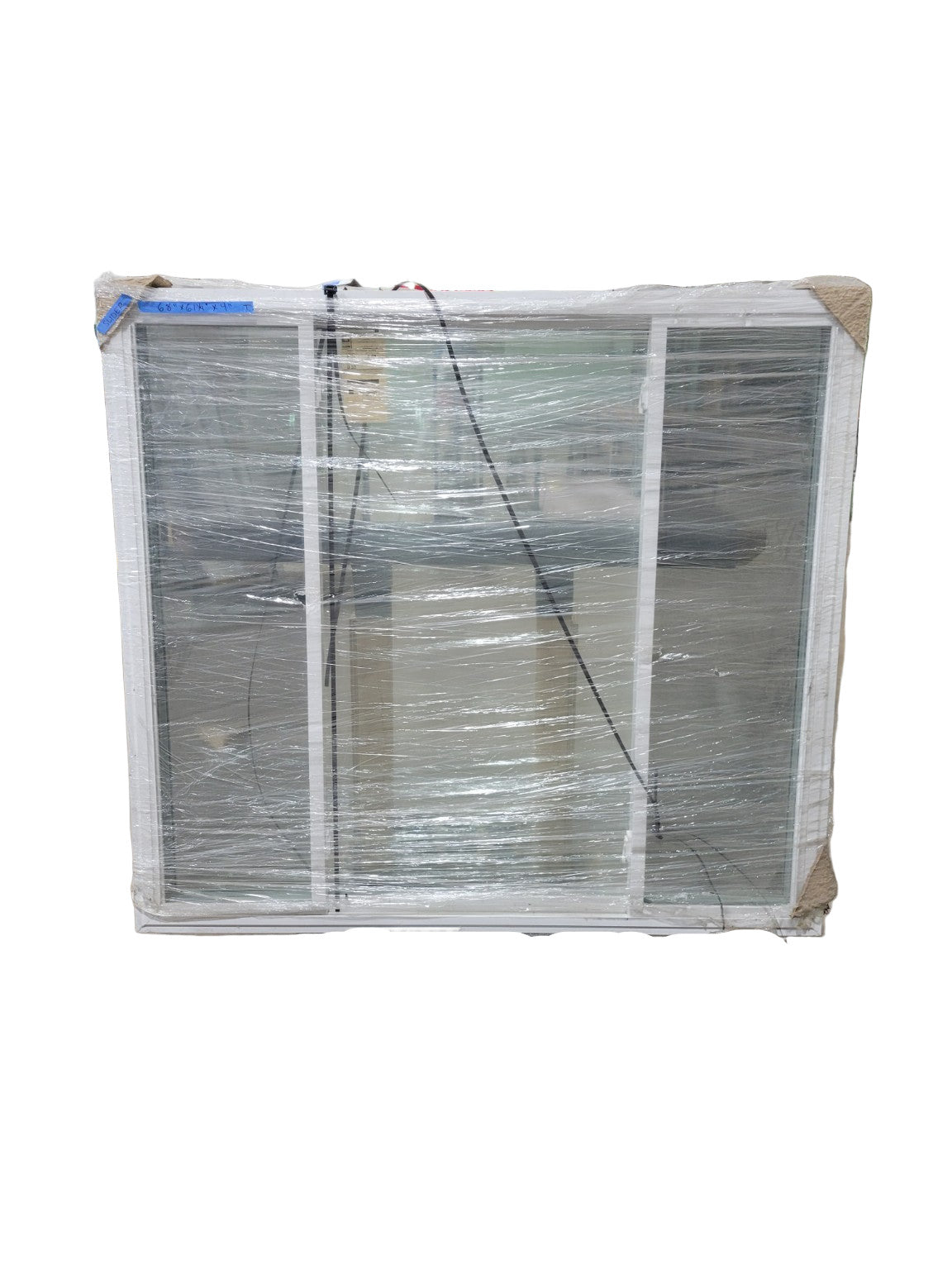 Double-glazed insulated glass unit sealed within a welded vinyl frame; precision factory mulling for square alignment and strength.