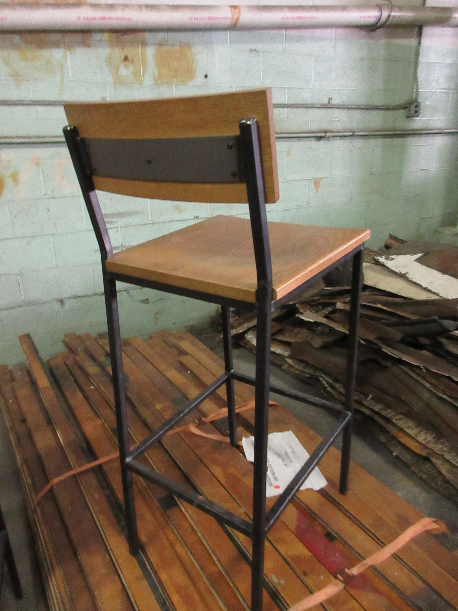 Restaurant Chair- Bar Height Metal Base Wood Seat and Back
