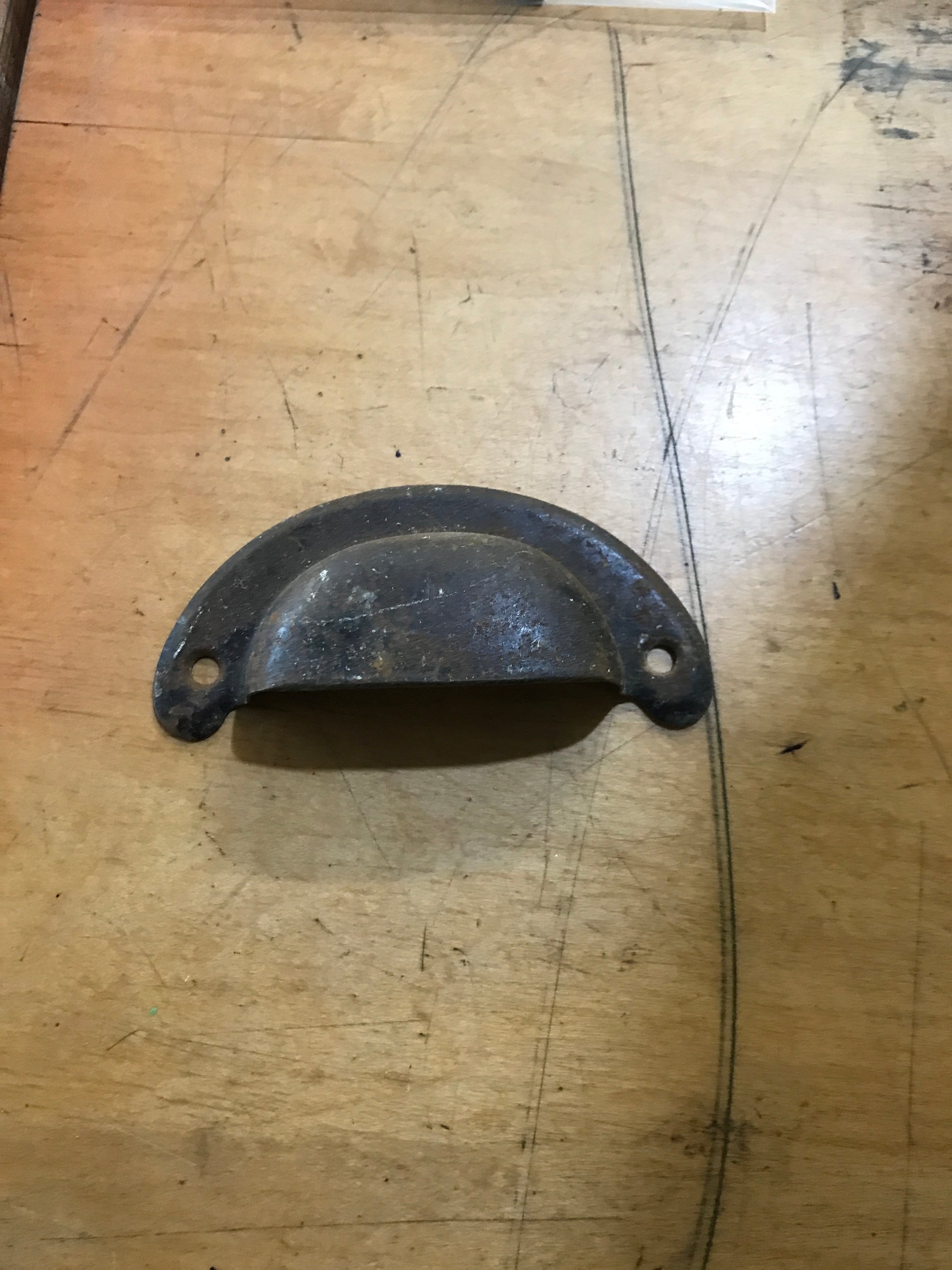 Description : Round brass drawer pull 3 7/8 x 1 5/8