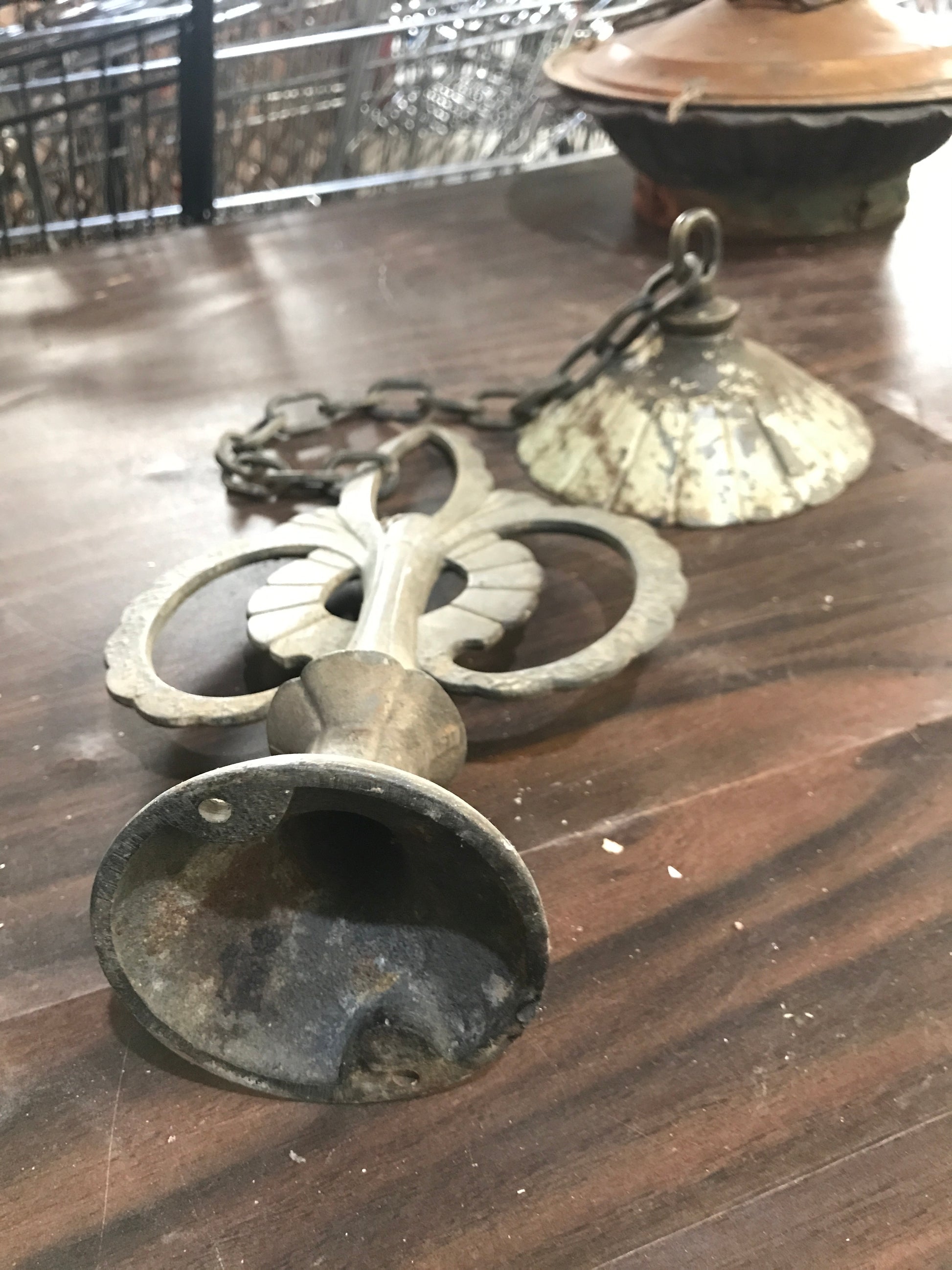 Round Ceiling Mount Hanging Fleur De Lis Brass Light Fixture - Single Bulb