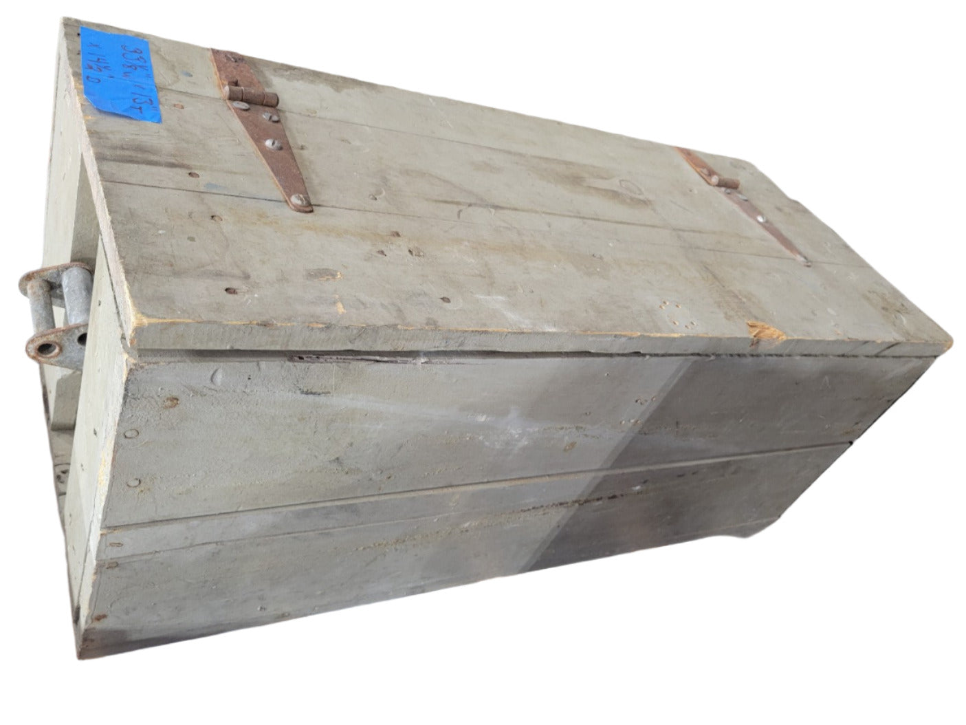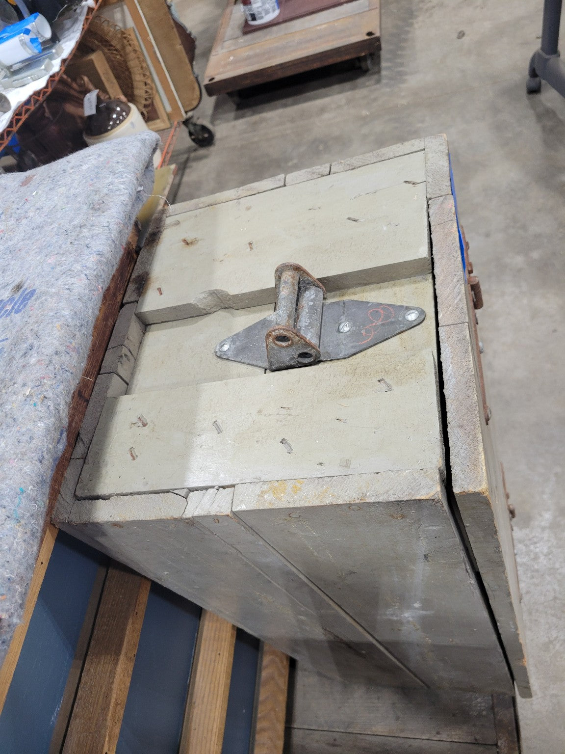 Likely served as a bench or floor chest in a work shed or warehouse; built for durability