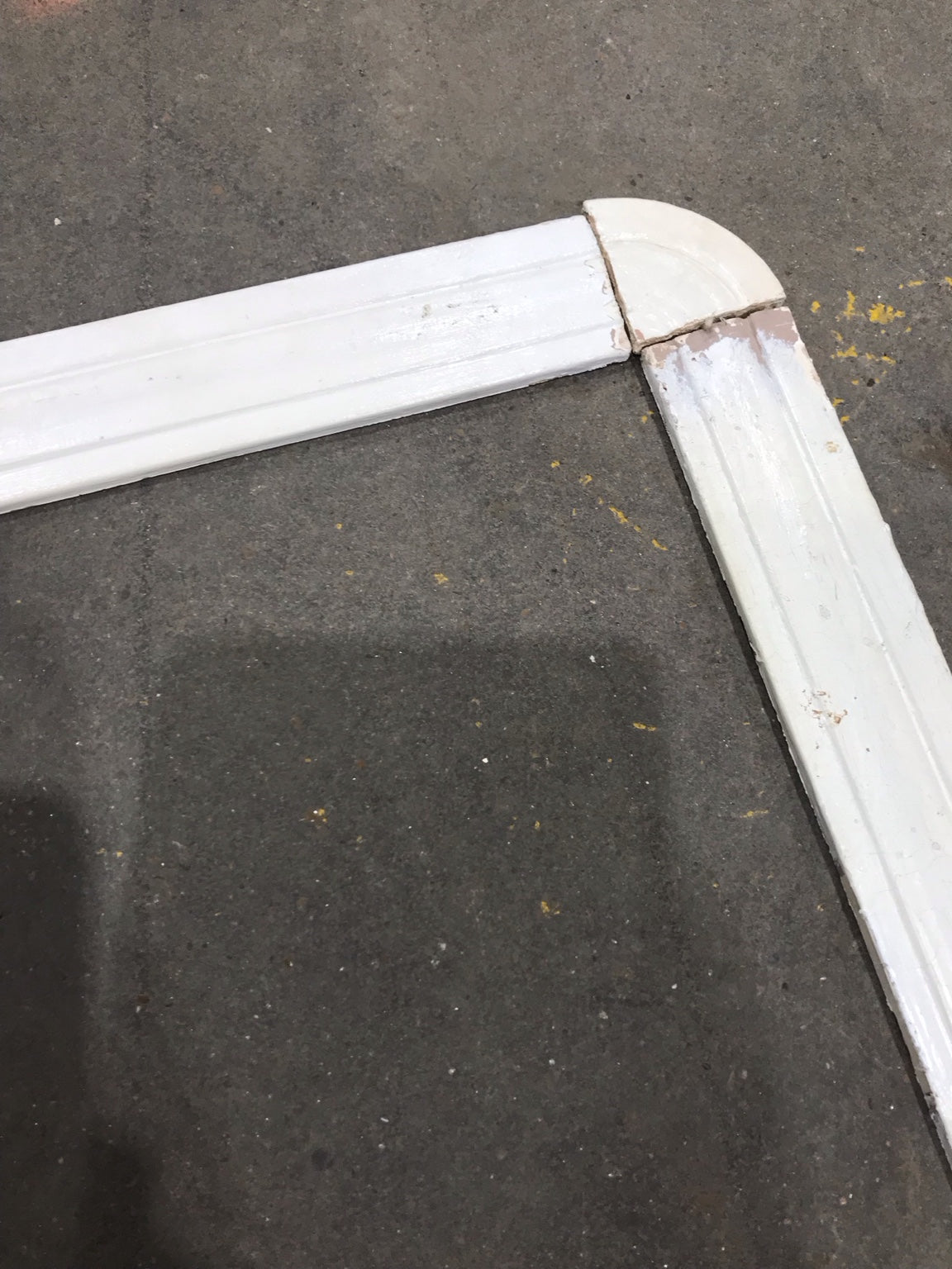 Description: A single salvaged door trim frame measuring 81" x 30". Constructed from painted wood, this frame features rounded corners and a distressed finish that showcases its vintage character. Perfect for restoration or repurposing in rustic or vintage-style interiors.