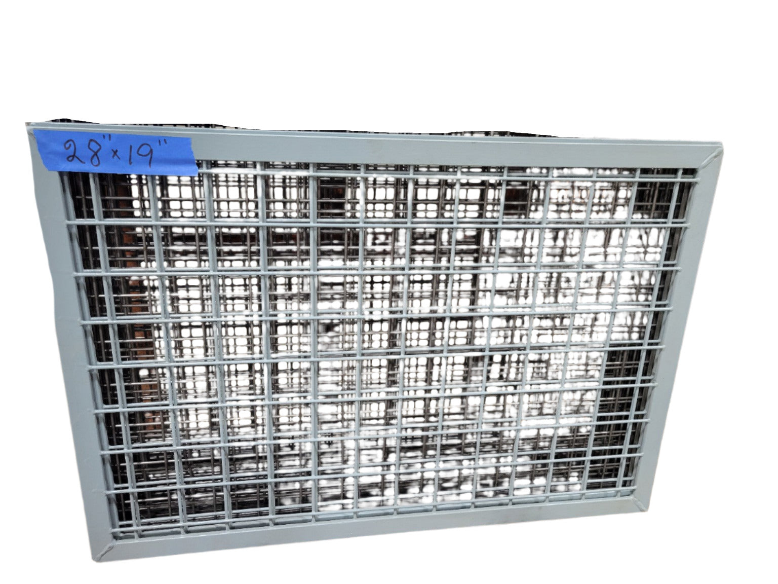 Industrial-style metal mesh panel with welded steel framing. It is a heavy-duty piece ideal for repurposing in architectural, HVAC, or creative upcycled design projects such as cabinet inserts, wall features, or ventilation screens.