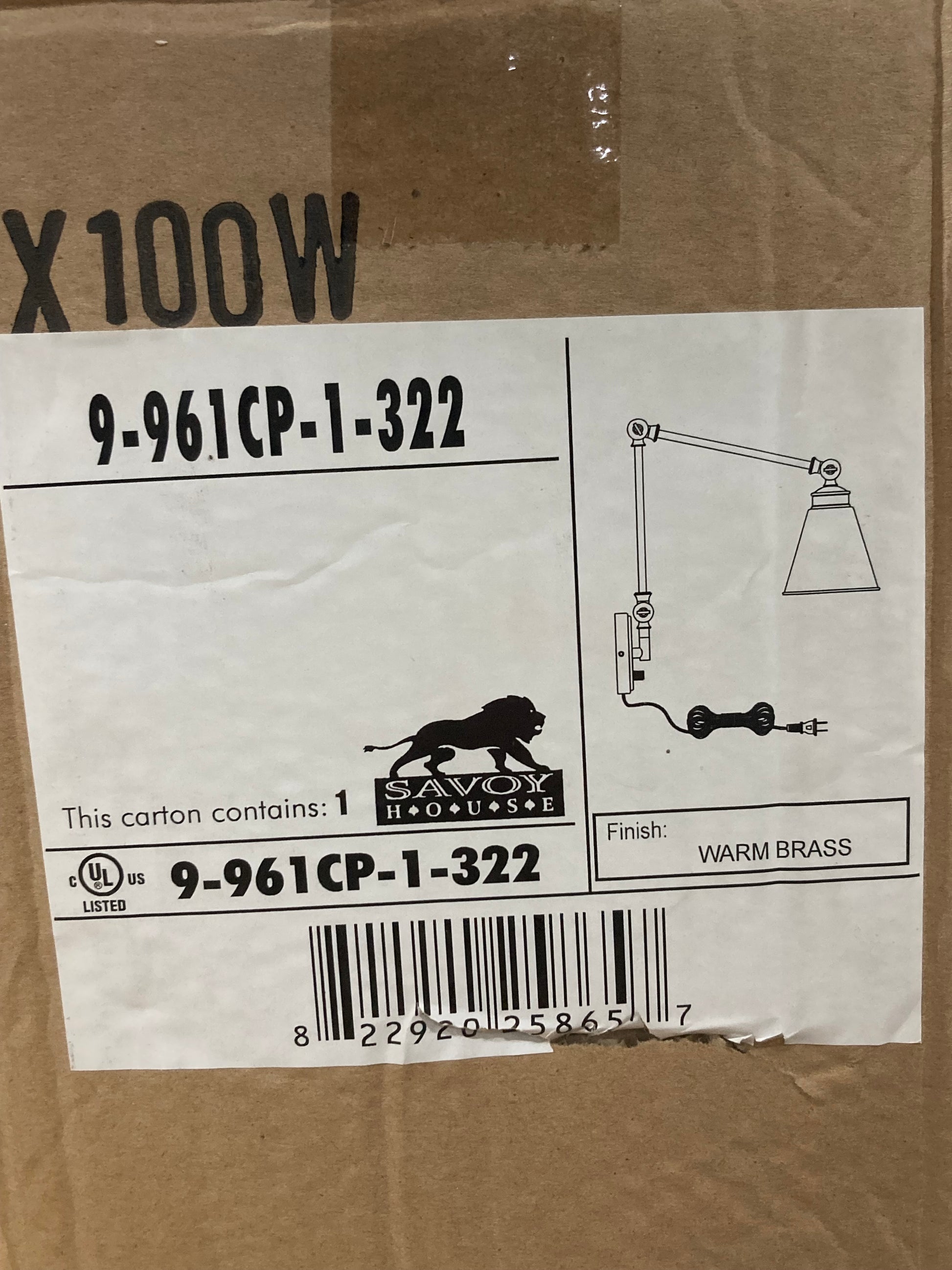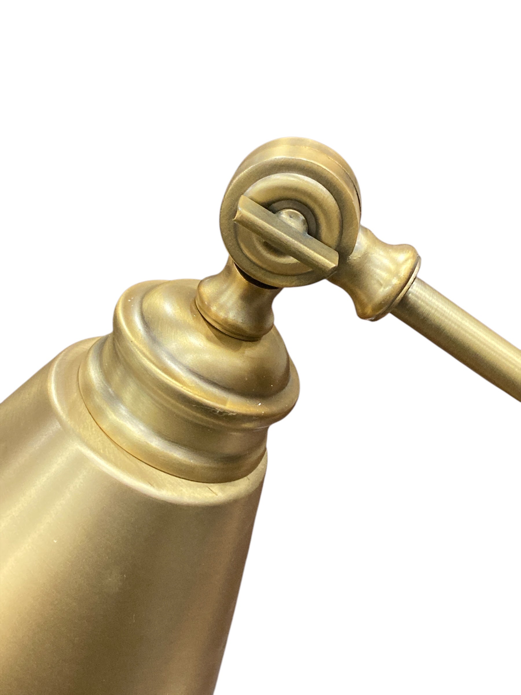 Description : 16"H Plug in wall sconce, warm brass finish. Adjustable arm.