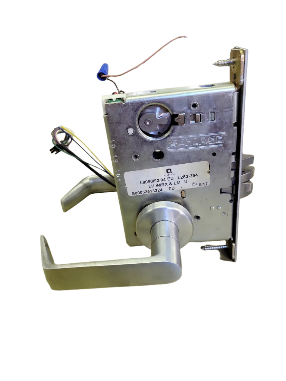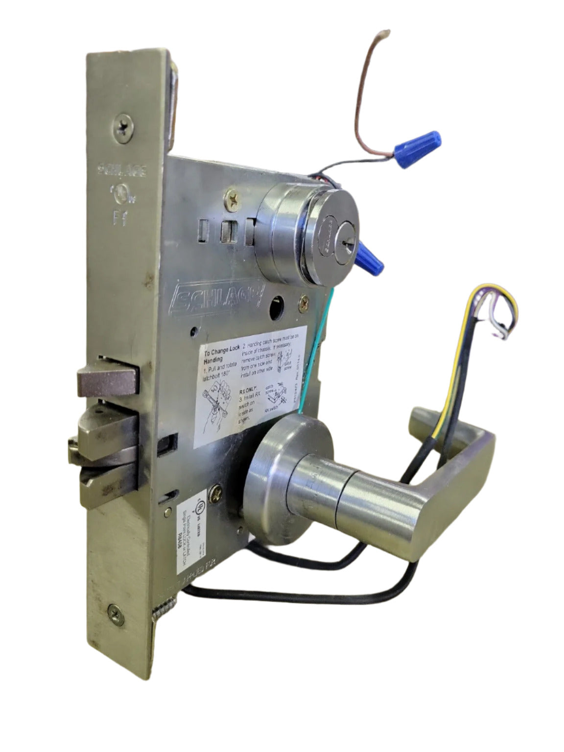 Schlage L Series Electrified Mortise Lockset – Grade 1, Fire Rated, 12V/24V DC, Lever Handles, Schlage #R8458 AS IS