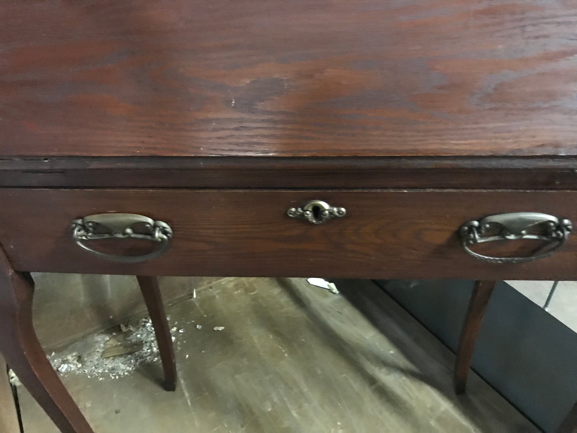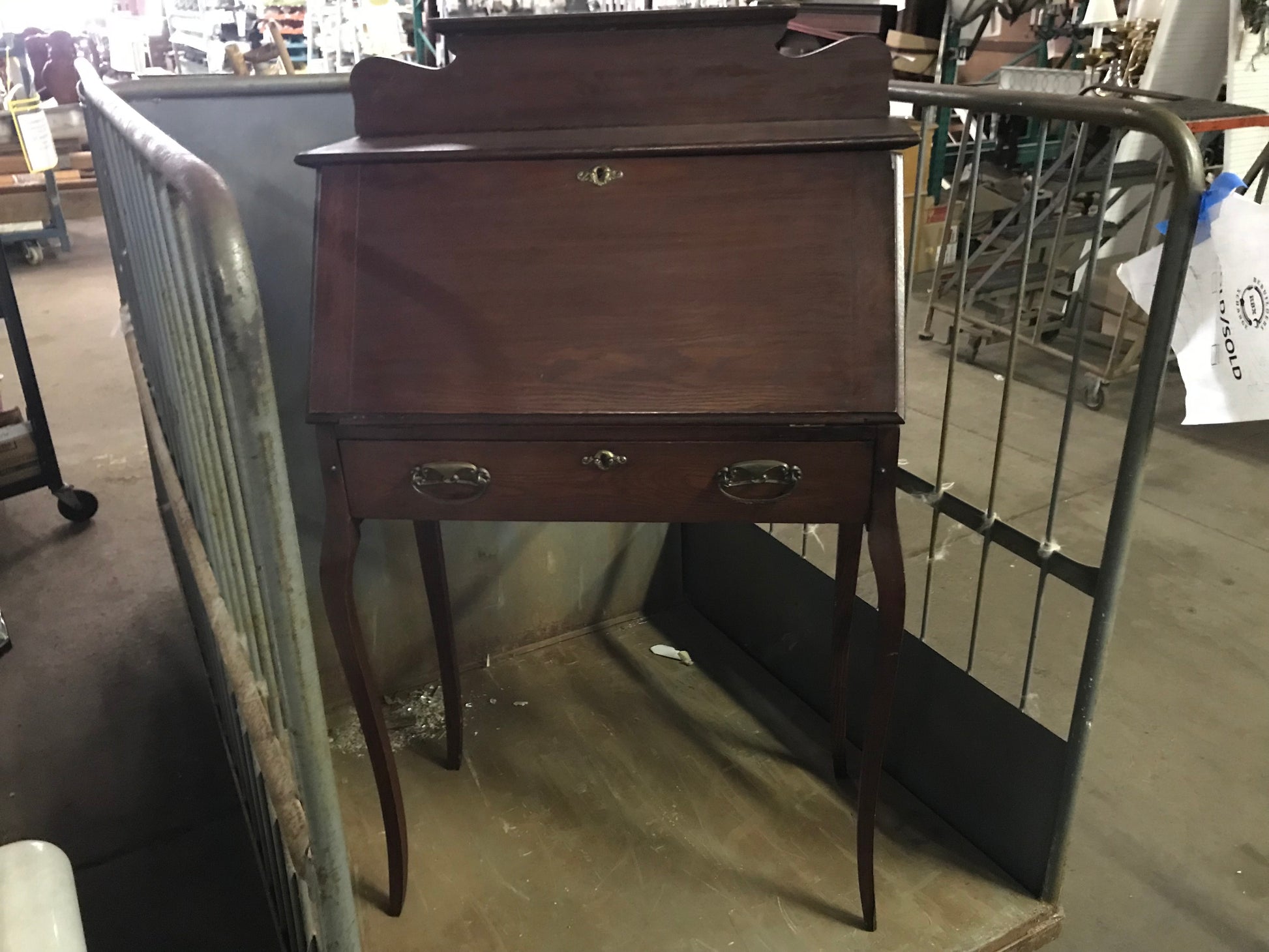 Description : Antique Secretary Desk: Flip Down Top with small Storage Inside. Pull-out drawer, Brass Handle