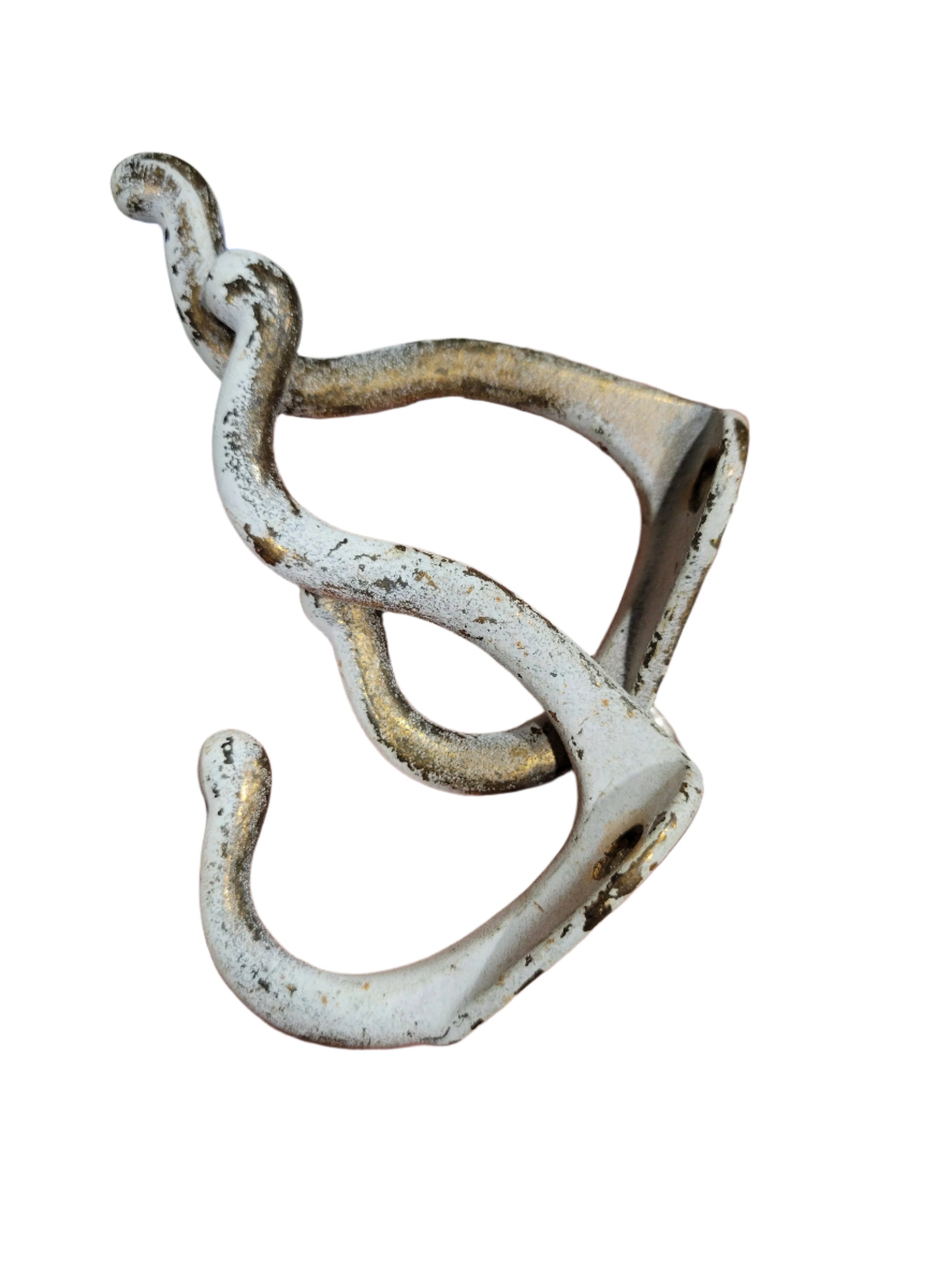 Set of 2 Vintage Cast Iron Wall Hooks – White Painted Finish