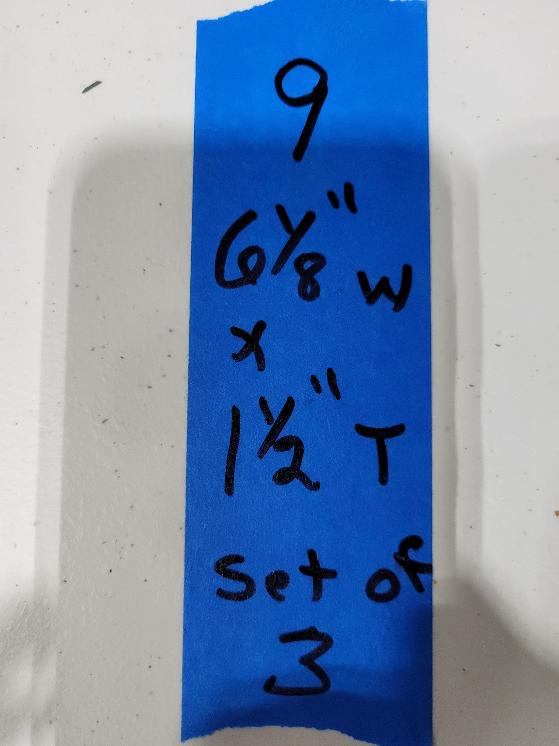 This set includes three salvaged wood drawer pulls with a classic scooped profile and layers of chippy white and blue paint over raw wood. Each pull measures 6 ⅞" wide by 1 ½" tall and features a worn, rustic surface with visible nail holes, ideal for repurposed or antique furniture projects. Their character-rich patina and timeworn finish speak to decades of use, offering a warm, vintage look for restoration or decorative reuse.
