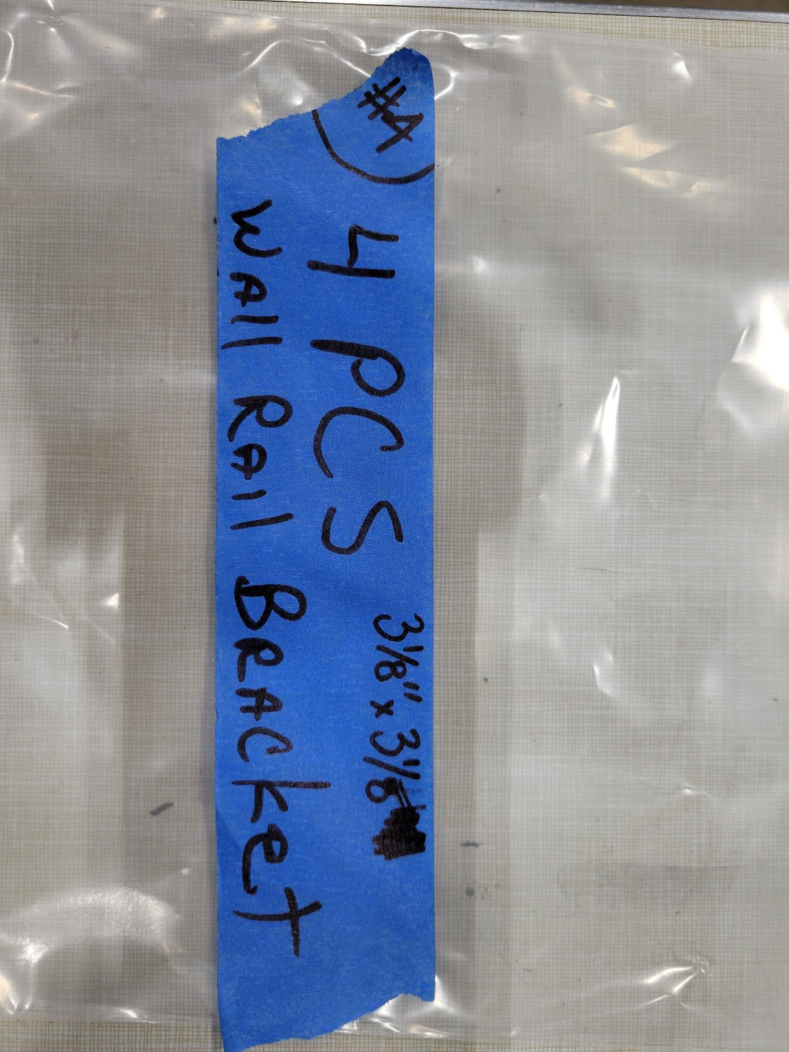 This set of four matte black wall rail brackets is designed to support stair handrails or wall-mounted safety bars. Each bracket measures approximately 3⅛" x 3⅛" and is constructed from durable metal with a smooth black powder-coated finish. Two brackets are factory-sealed in individual bags with included hardware, while the others are open but in like-new condition. Ideal for modern or industrial interiors, they offer both utility and style for home or commercial applications.