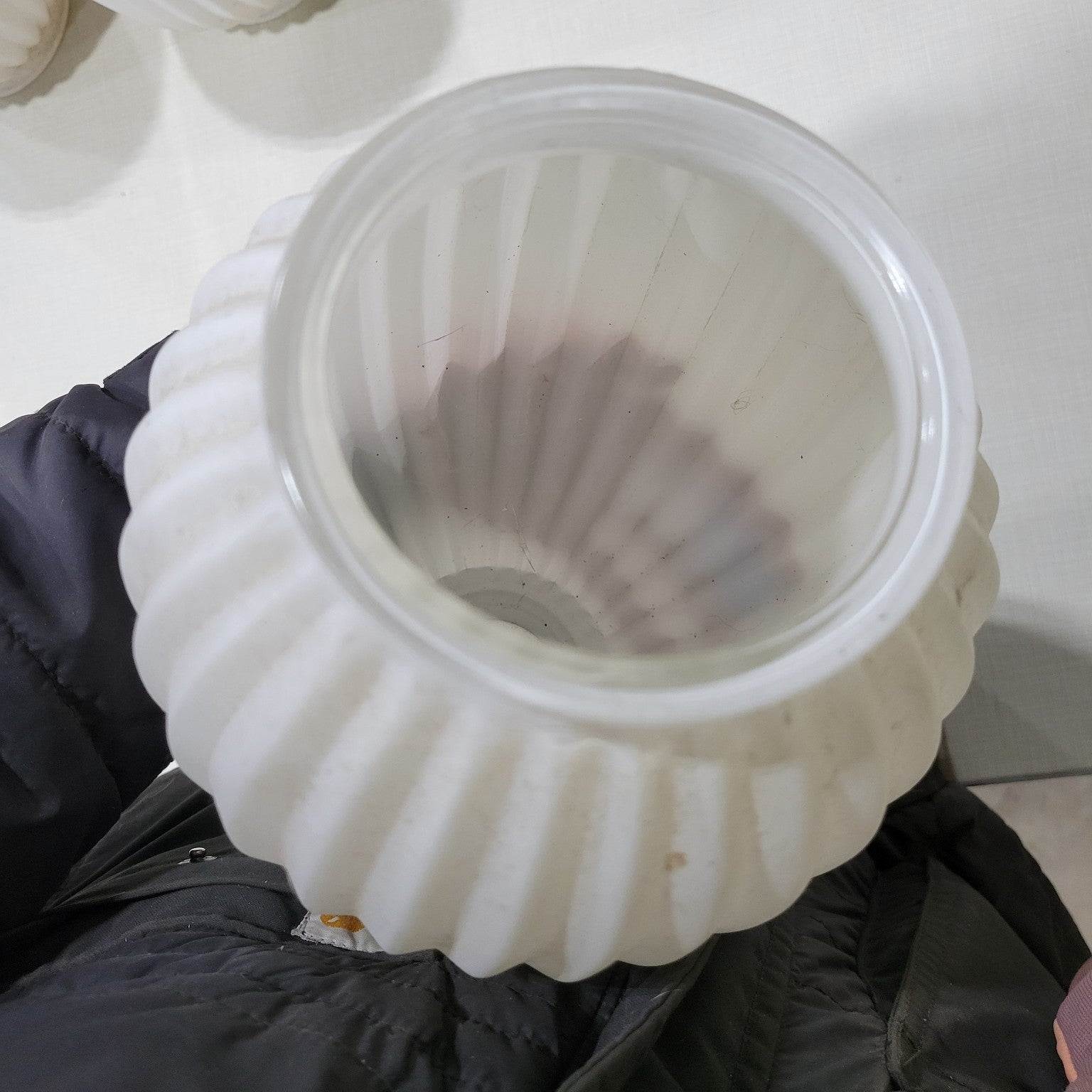 Set of Three Ribbed White Glass Light Globes