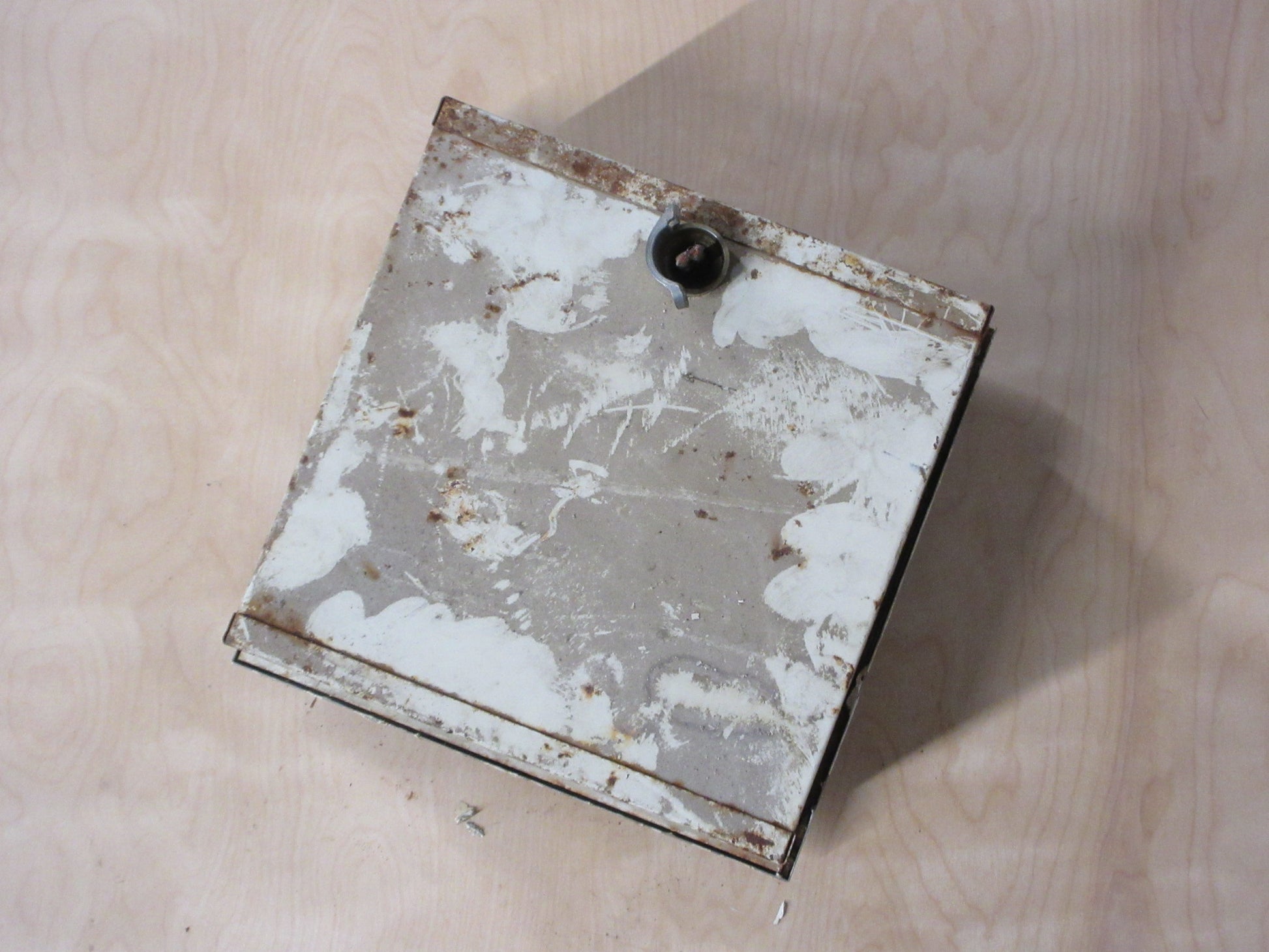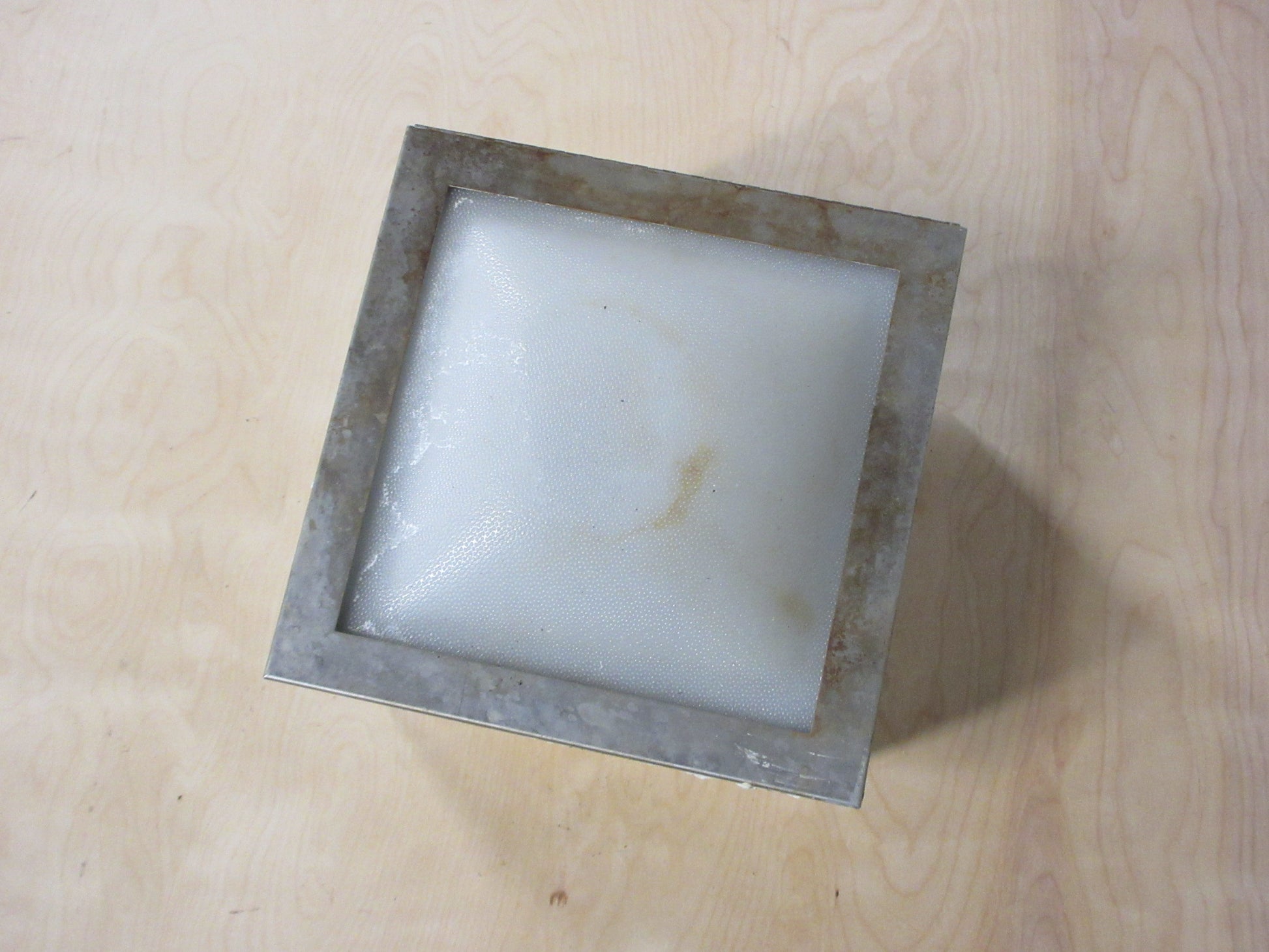 Description : Metal frame with frosted glass shade, ceiling mount light.