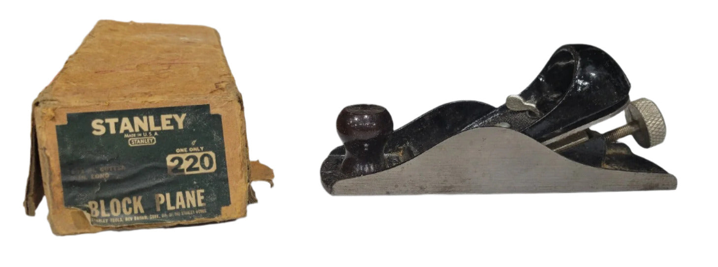 The No. 220 was a widely used block plane in American workshops and schools, known for its sturdy build and simple adjustability.