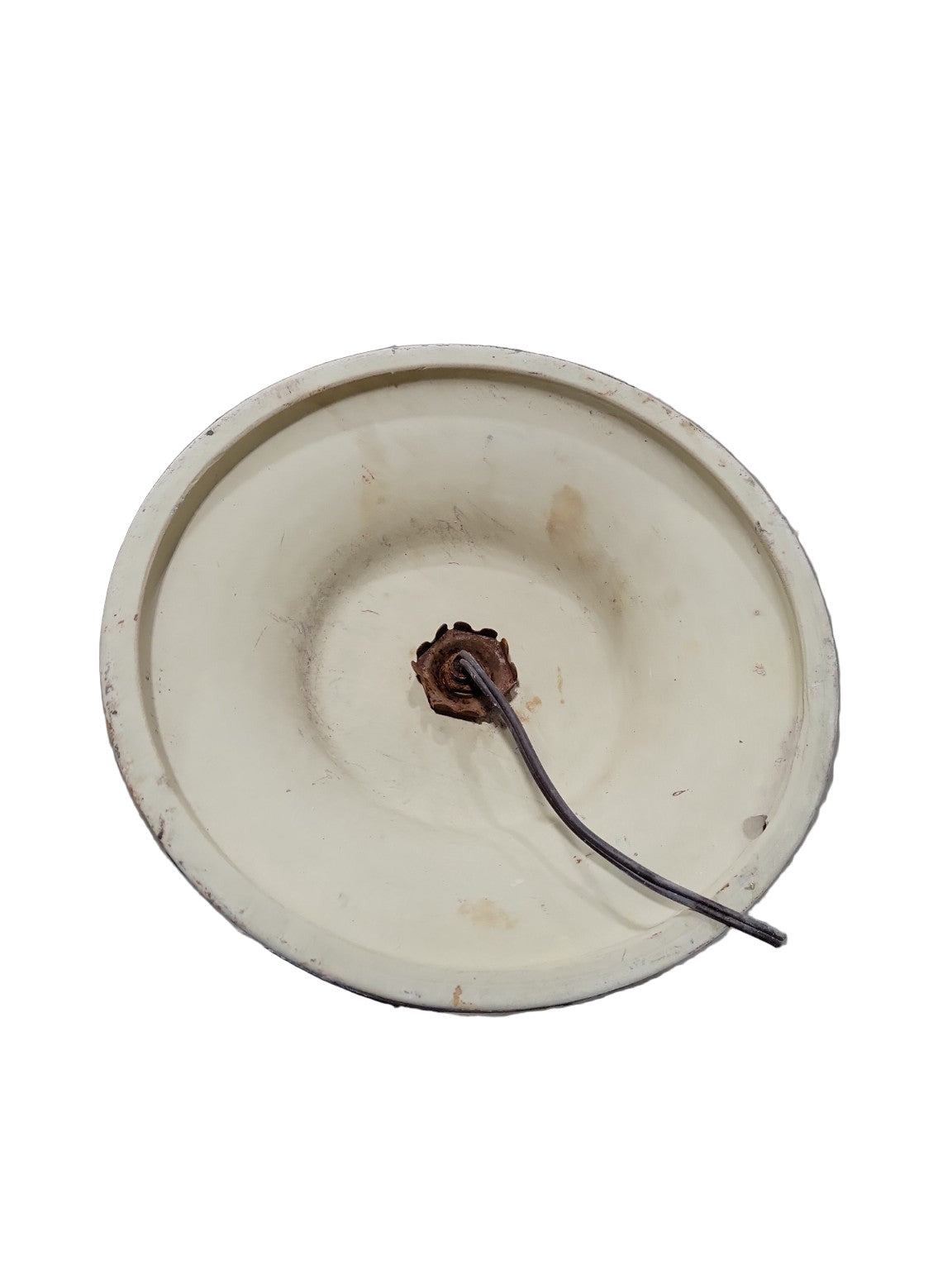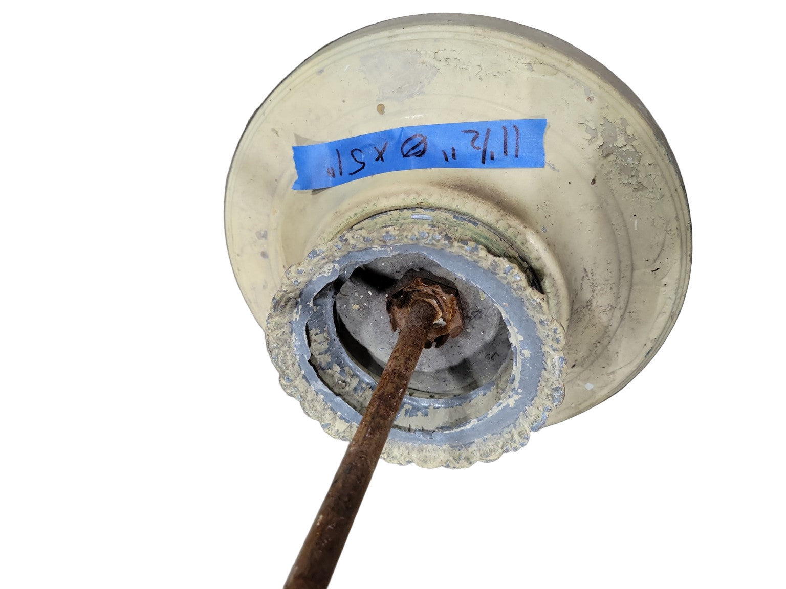 Structurally solid. Aged surface with paint chipping, light rust, and no wiring. Threading appears intact. Ready for cleaning and reuse.
