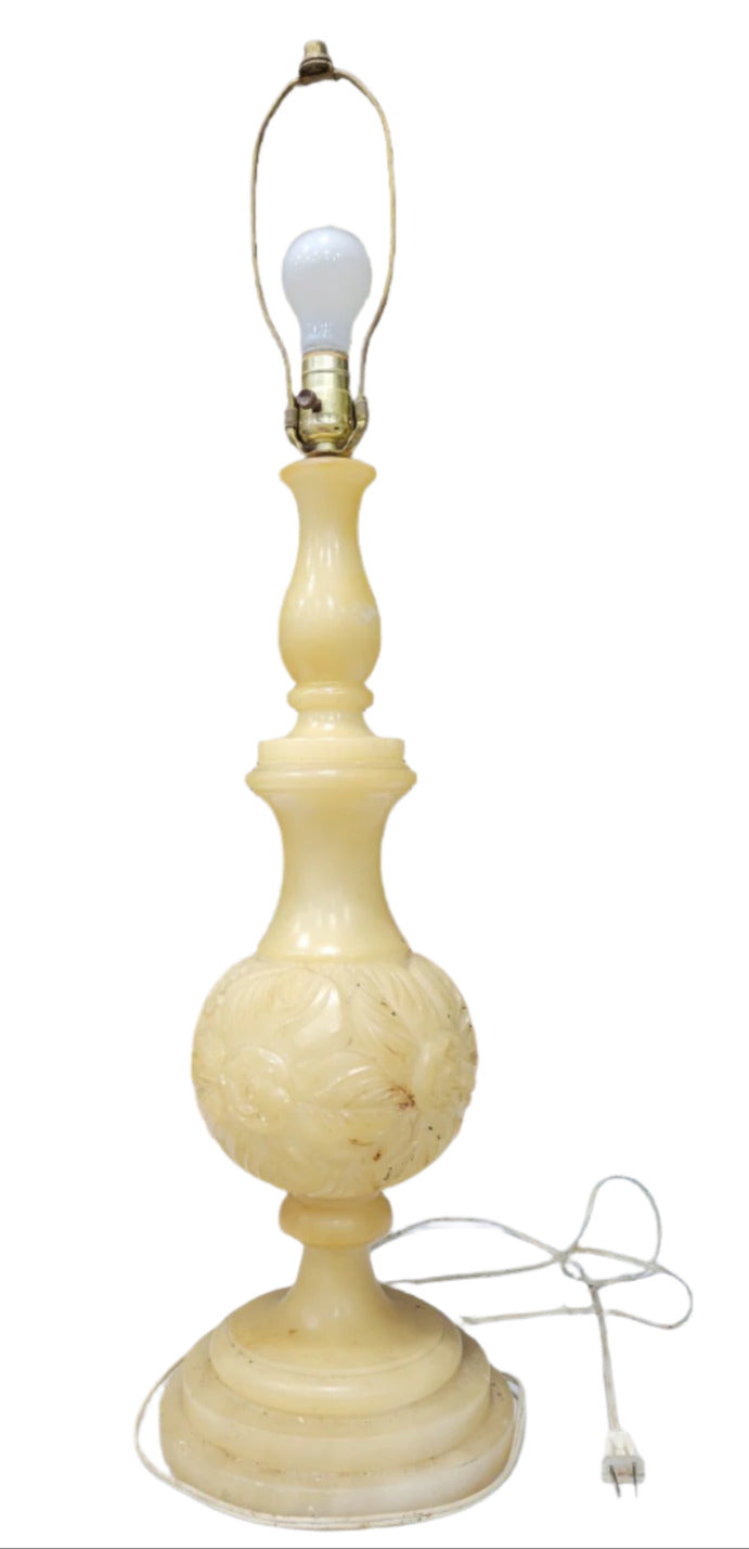 Vintage Alabaster Floral Carved Table Lamp – Cream Finish