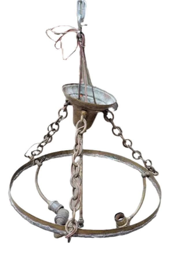 Vintage Brass 3-Light Hanging Fixture Frame – Salvage-Ready (AS IS)