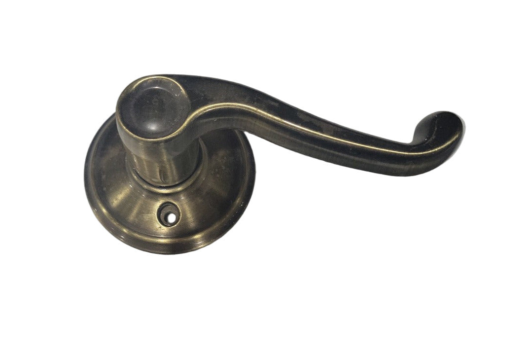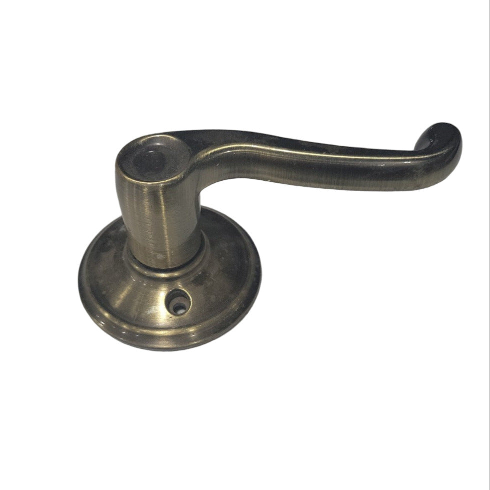 This vintage brass fixed lever handle features a gently curved ergonomic design and a warm satin-brass finish. It's a single handle component, likely once part of a door or cabinet hardware set. With its understated elegance and substantial feel, this piece could be repurposed for restoration work or as a standalone accent in custom furniture or door builds.
