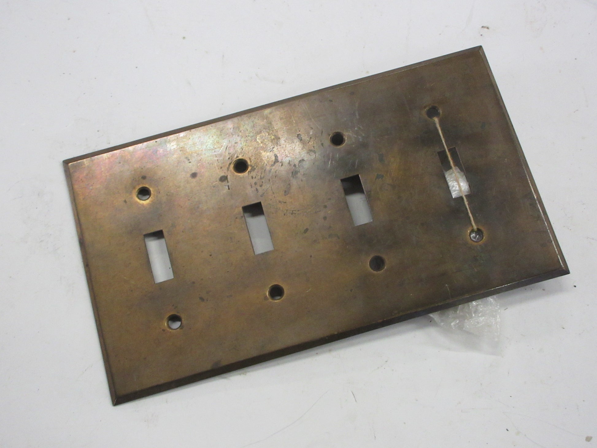Description : Brass vintage four switch cover plate.