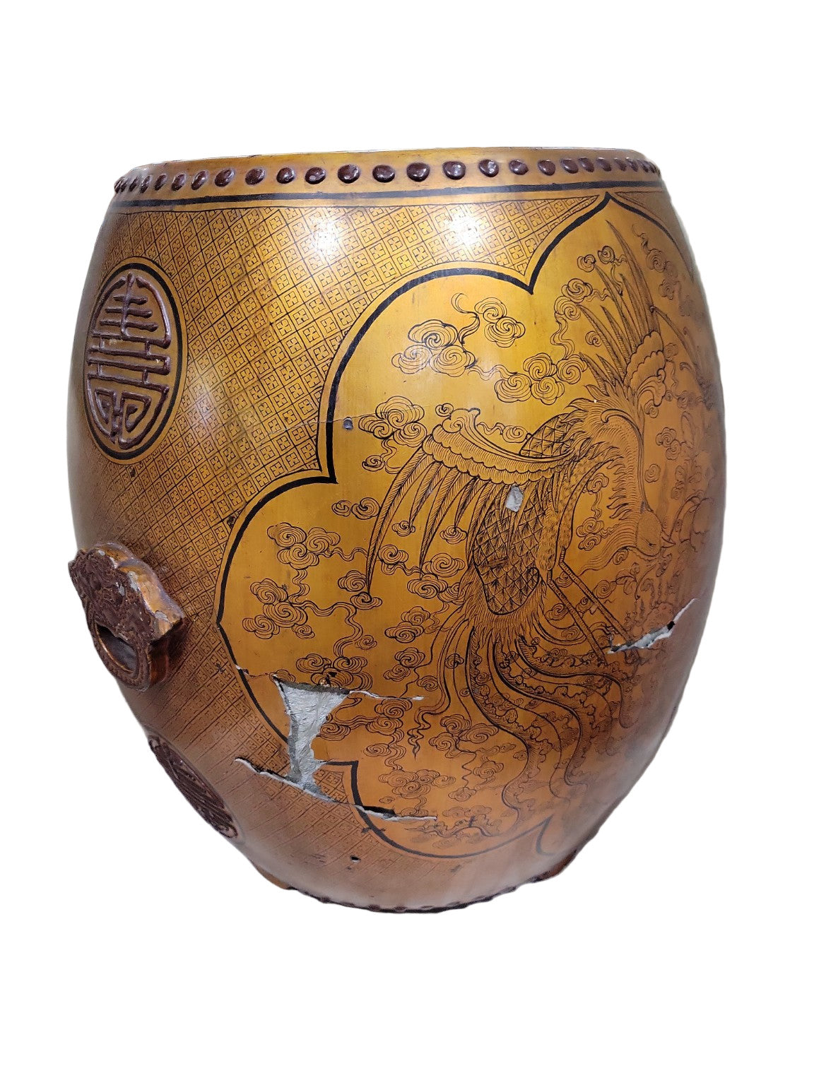Vintage Chinese Garden Drum Stool with Phoenix and Shou Symbol