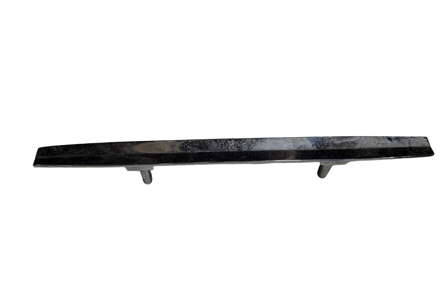 This long, sleek chrome cabinet pull has a mid-century modern profile with squared mounting bases and a subtly arched form. Measuring 12" in length, it's ideal for wide drawers, closet doors, or sliding panels. The underside is stamped “HC 28-14091,” possibly indicating the manufacturer or model number. A striking piece for restoration or modern industrial decor.