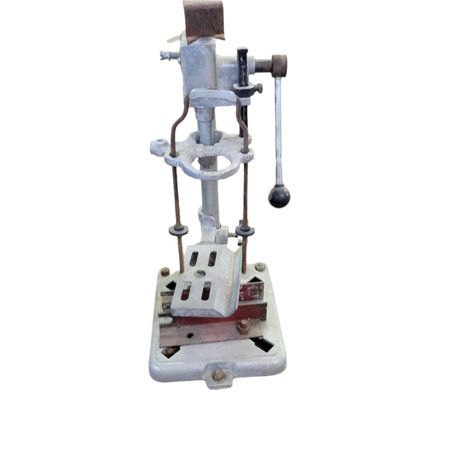 History: Drill press stands were common in workshops to enhance the precision of hand-held drills. This particular model reflects utilitarian engineering from an era when manual adaptability was essential.