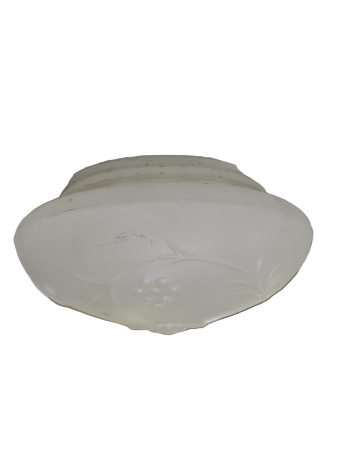 This charming vintage frosted glass dome shade features an elegant embossed grapevine and leaf motif, adding a soft decorative touch to any ceiling or wall fixture. Measuring 8 inches in diameter and 4 inches tall, the shade’s gently domed form provides diffused, even lighting—ideal for period restorations, hall fixtures, or flush-mount ceiling lights.