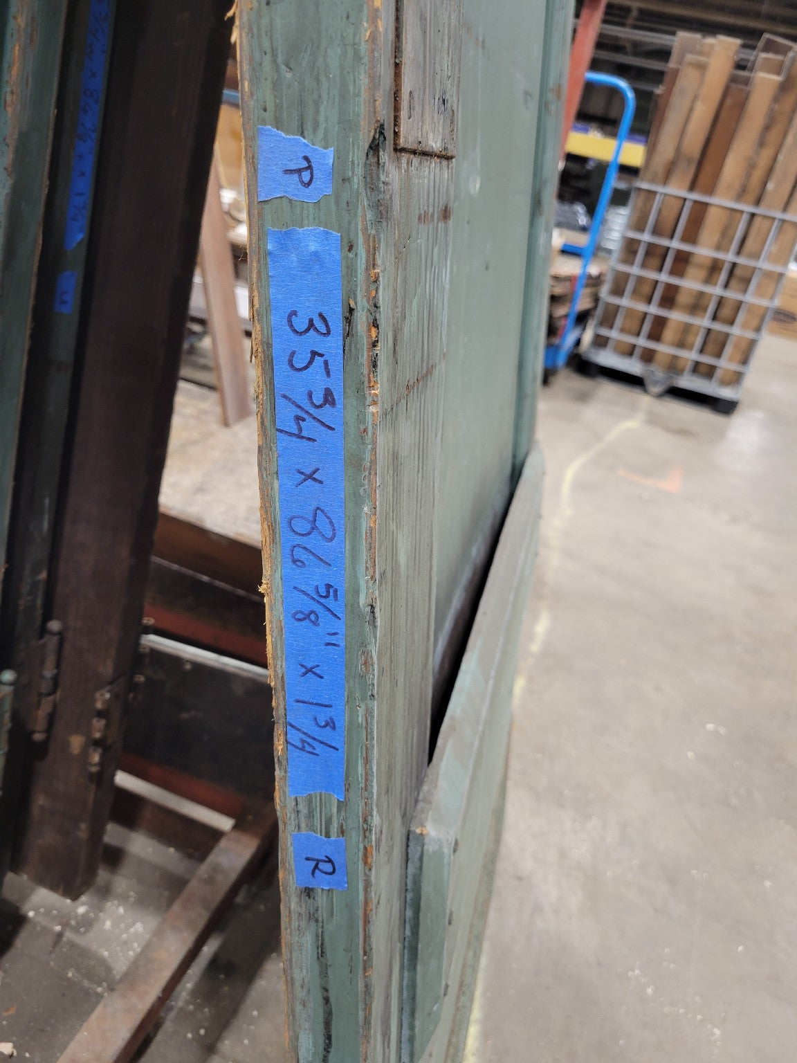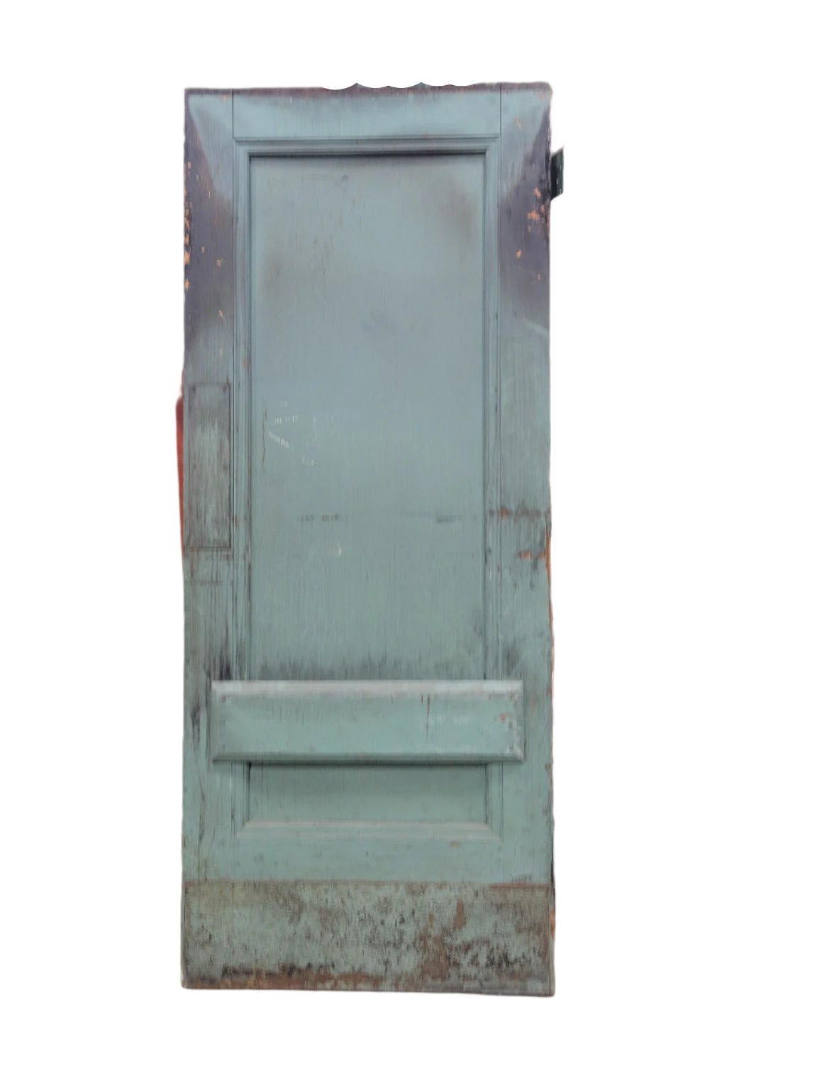 Vintage Green Industrial Wood Door – 86 ⅝" Tall – Heavy Patina (P)
