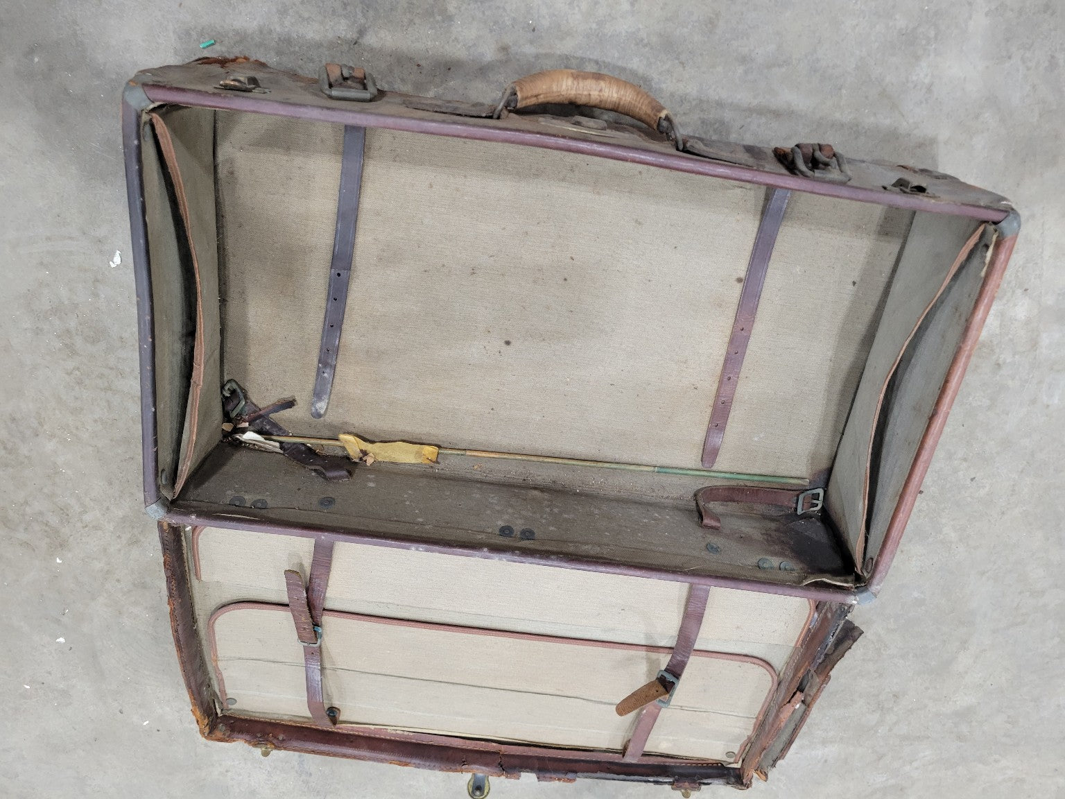 Travel trunks like this were commonly used for train or ship voyages and personal luggage before modern cases became popular.