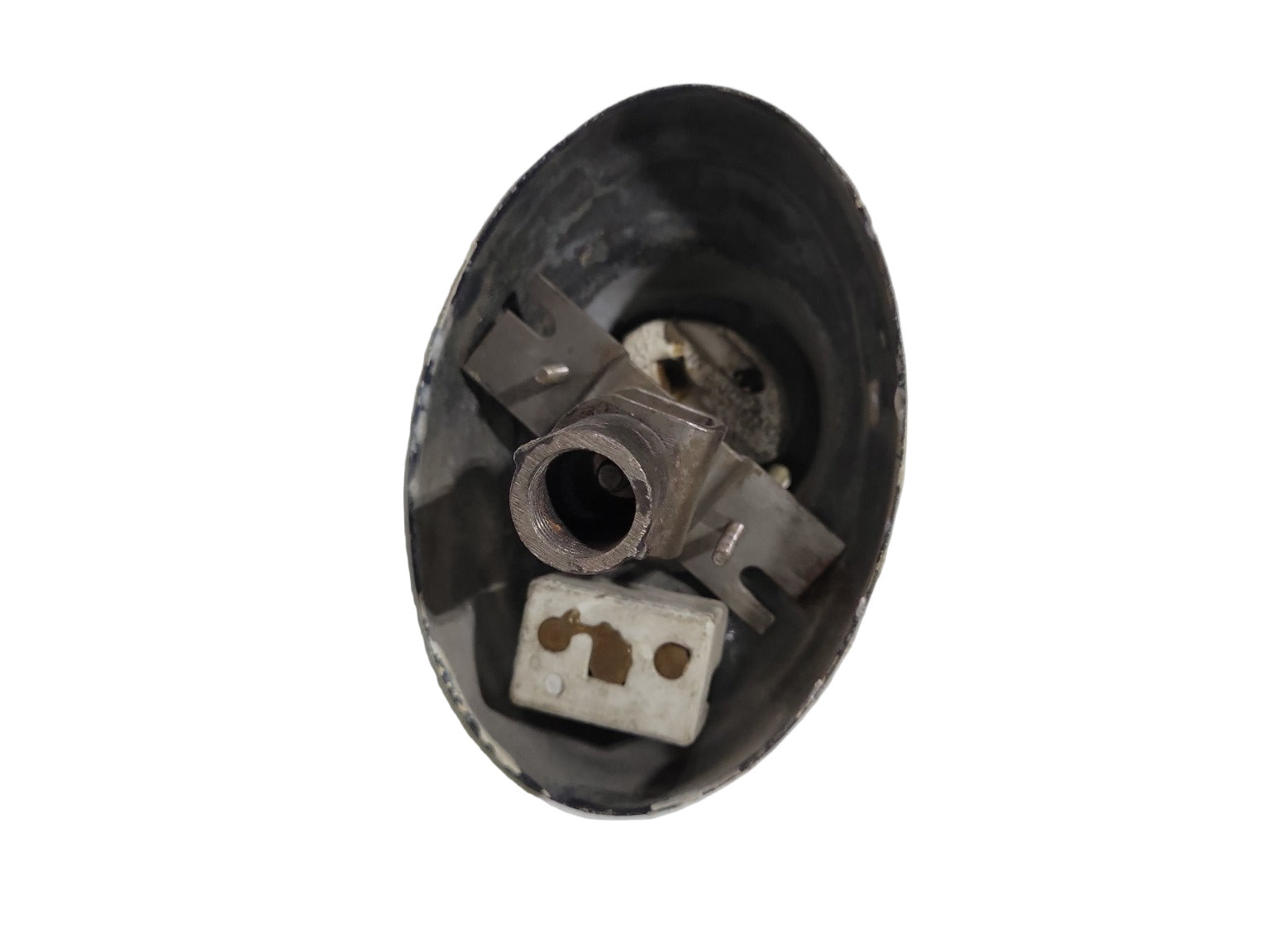 These fixtures were standard in mid-century utility environments — garages, basements, and factories — providing both light and limited power access before widespread duplex outlets became common.