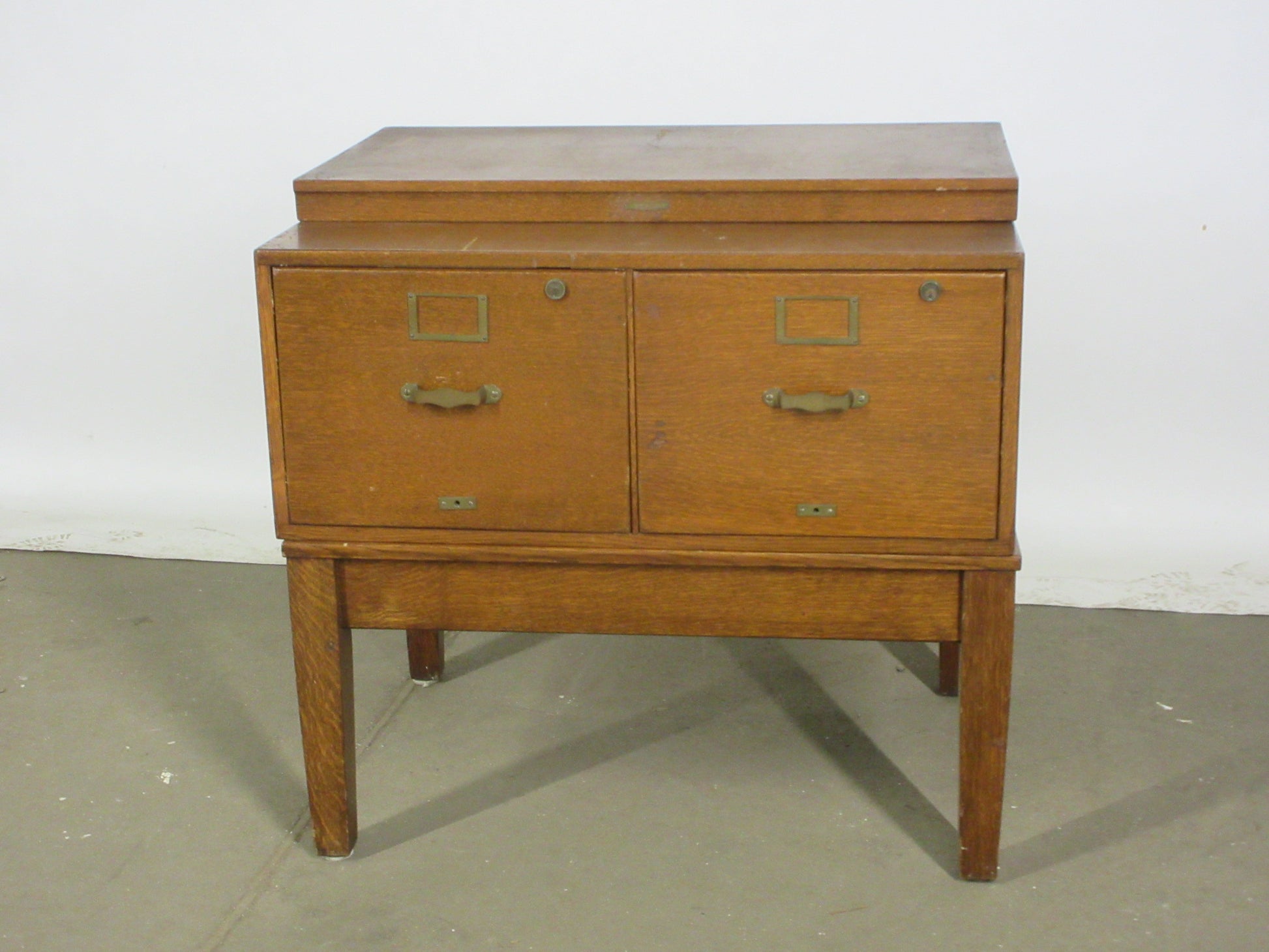 Description : Vintage solid wood library table with pull out filing drawers, all pieces detachable and breaks down into; top, drawer frame, base, two drawers.