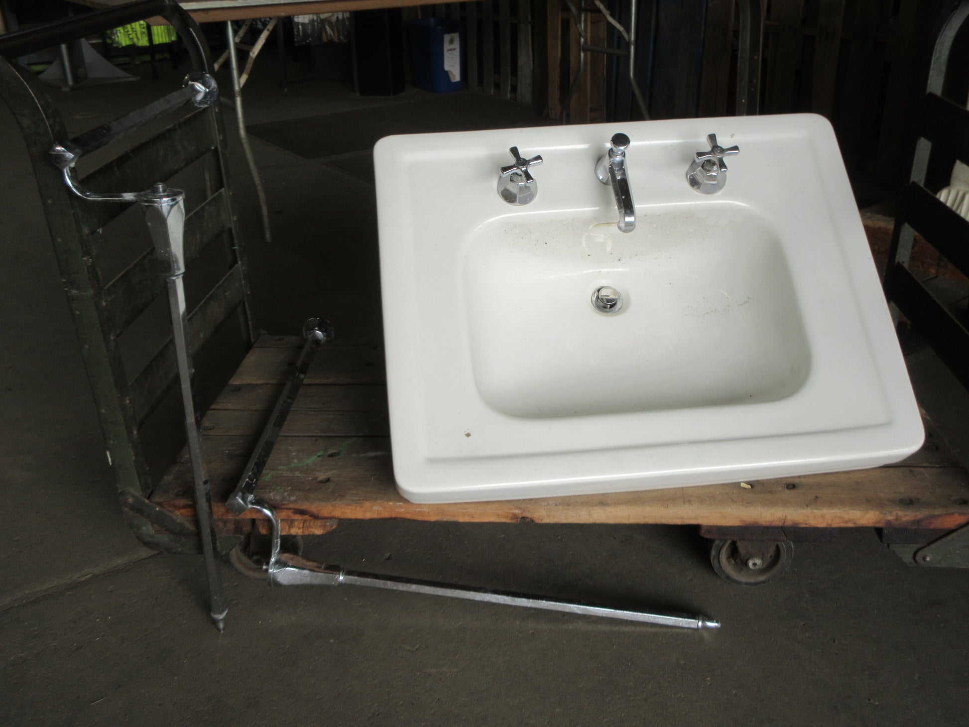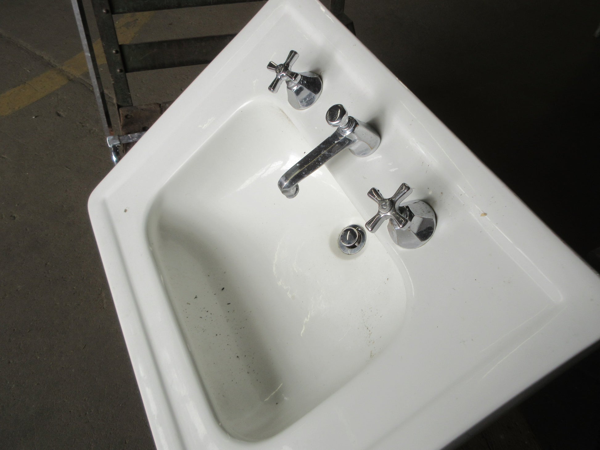 Description : Wall mount sink with stainless legs. Leg height measures 27"