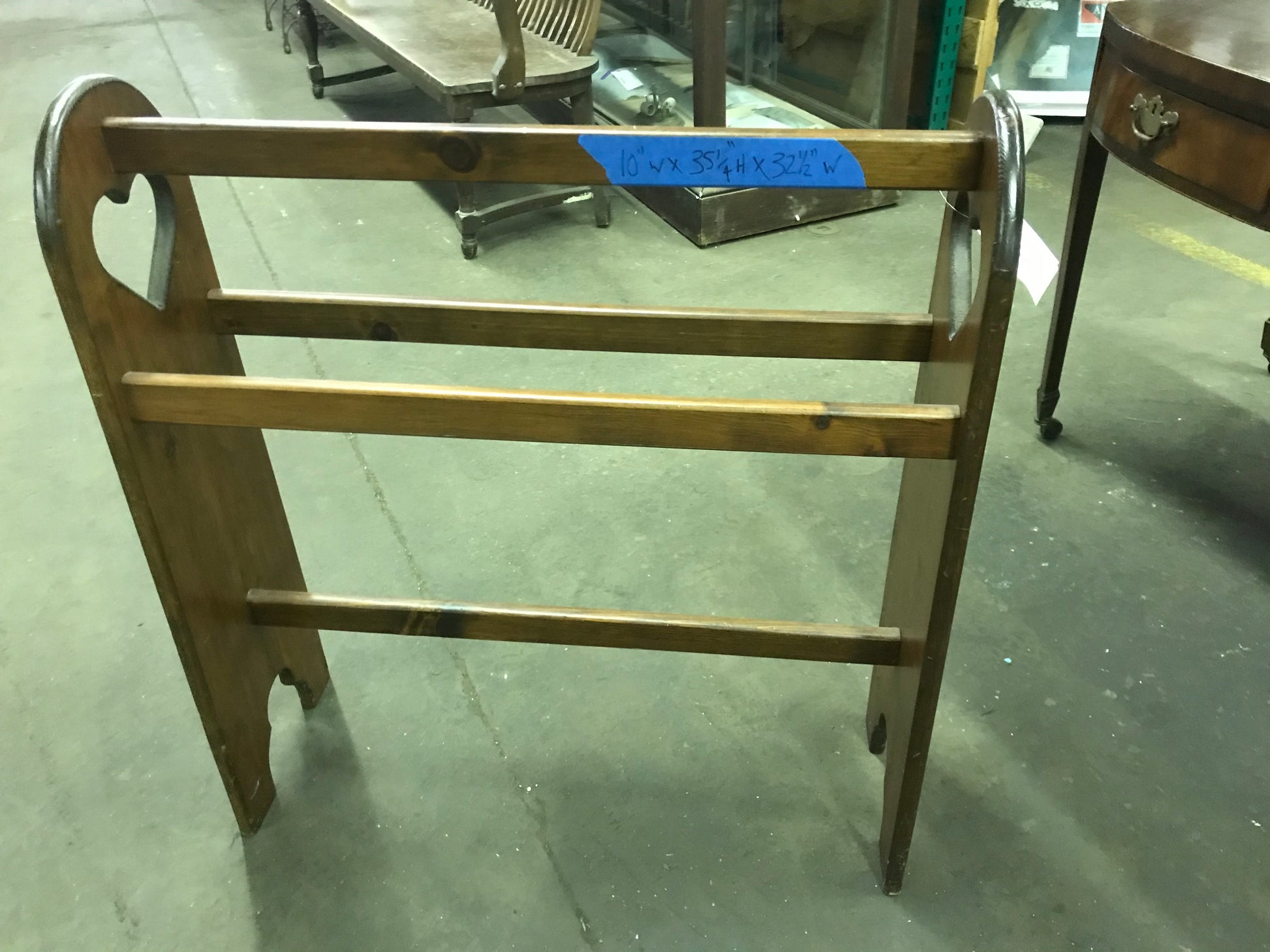 Description : Vintage Wood Laundry Rack with Heart Design on Ends 32" w x 35" H x 10"D