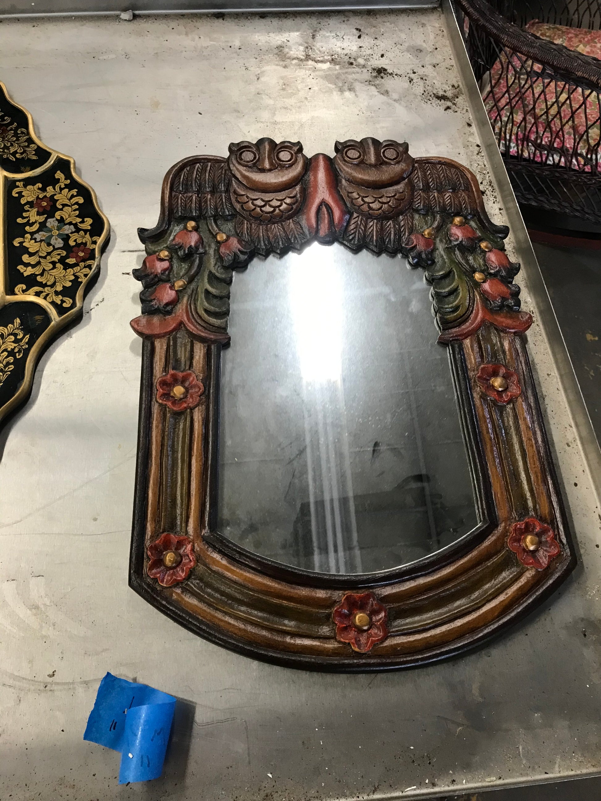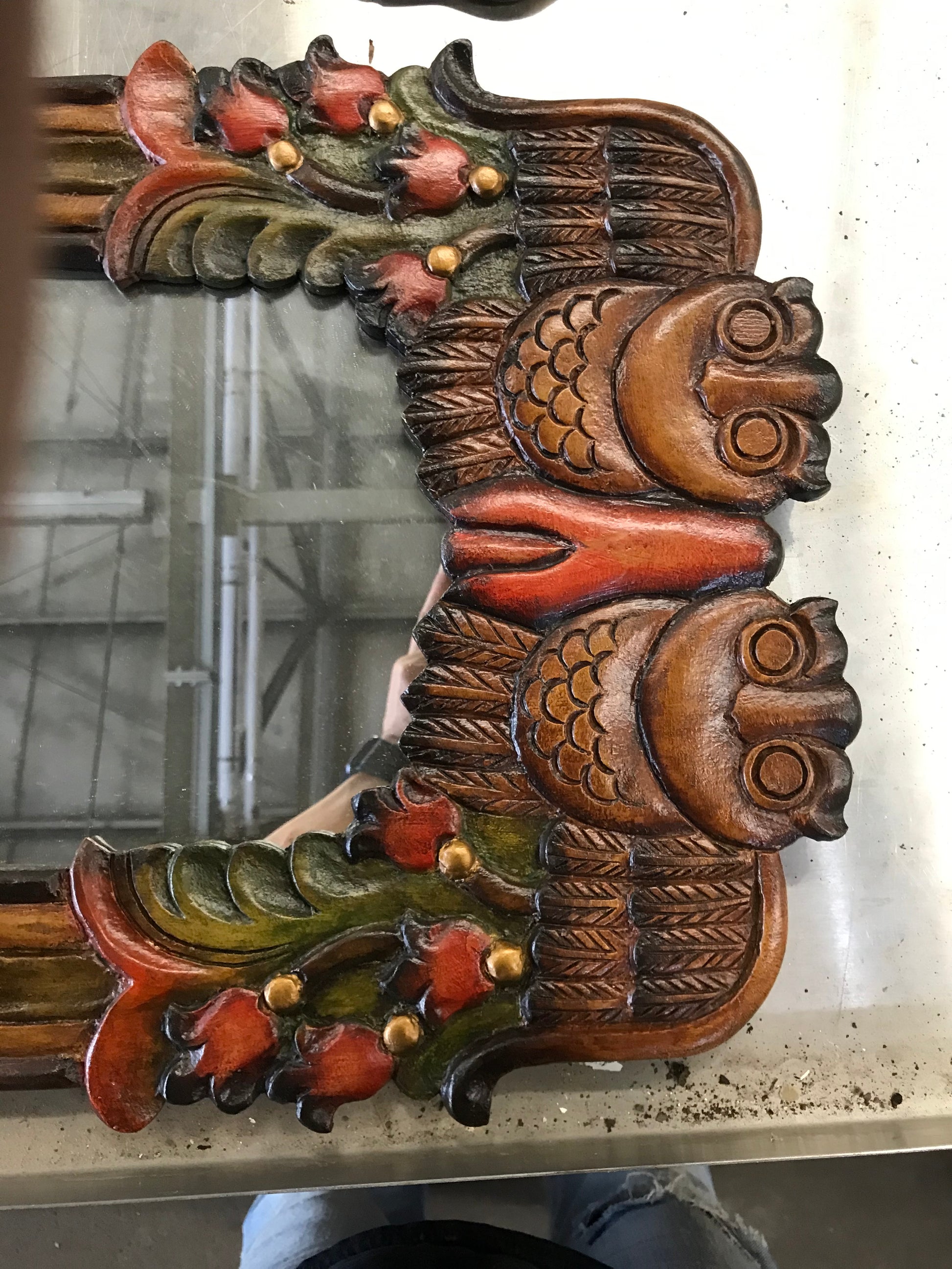 Description : 16" W x 23 1/4" H Painted with Carved Owls across Top