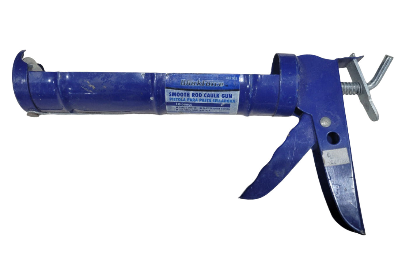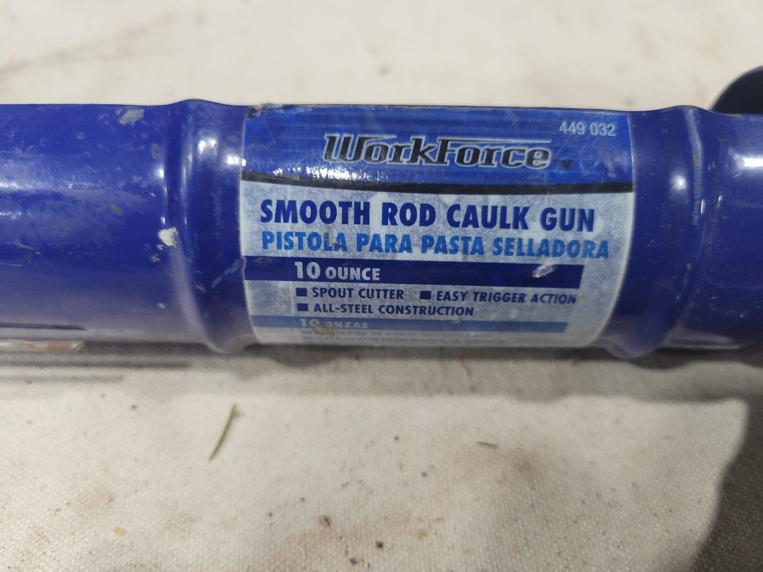 This WorkForce smooth rod caulk gun is designed for applying sealant from standard 10 oz cartridges. Constructed with a durable all-steel frame, it includes a spout cutter and features an easy trigger action for consistent flow. Ideal for sealing gaps, cracks, or joints in a variety of building materials. Shows minor cosmetic wear from light use, but remains in solid working condition.